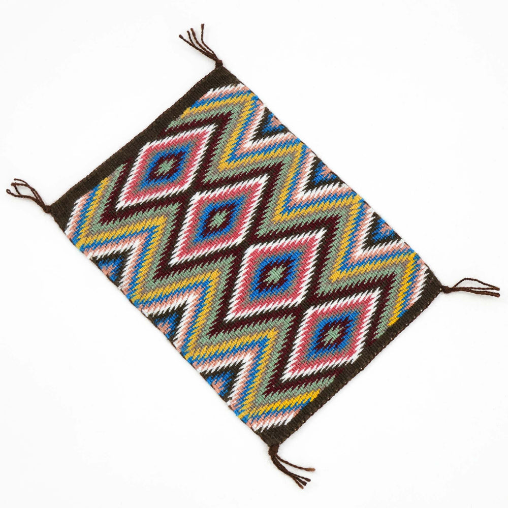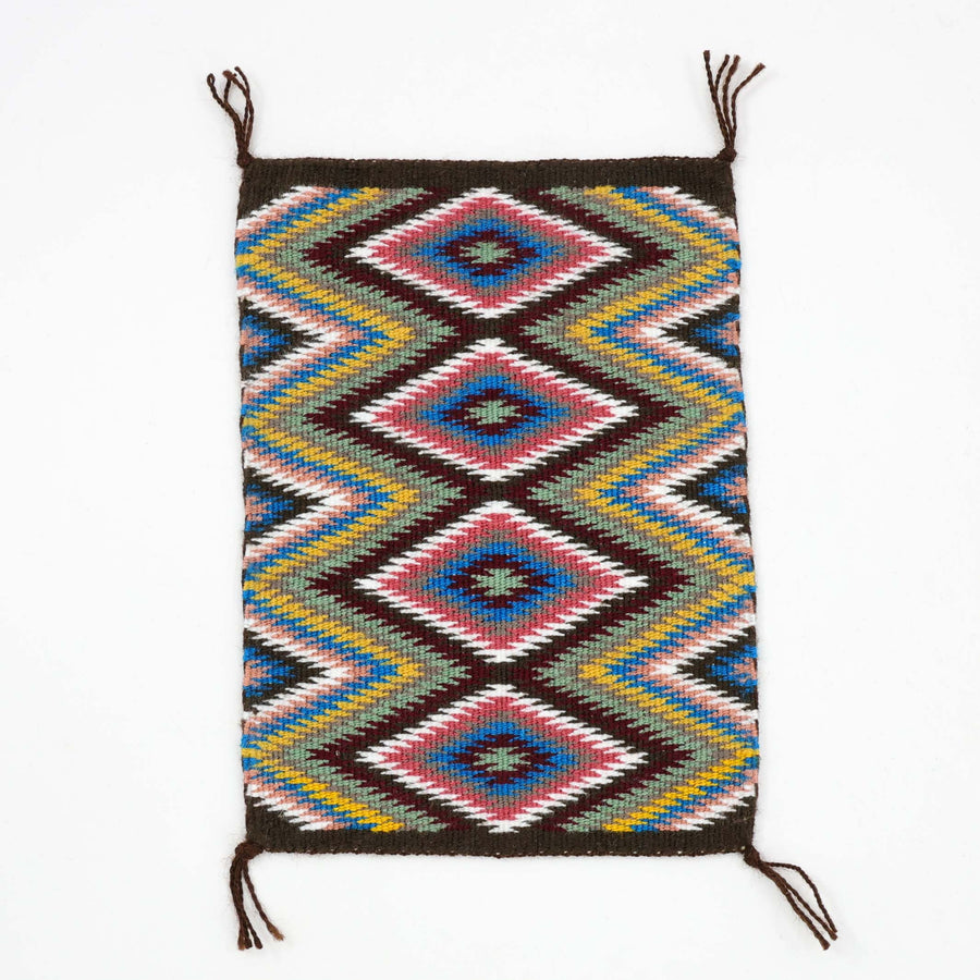 Handwoven Navajo Wide Ruins Weaving with a Diamond Banded Design using Vegetal Dyes. Kayeahl is the granddaughter of acclaimed Navajo weaver, Brenda Spencer. This is the second rug Kayeahl has ever woven.