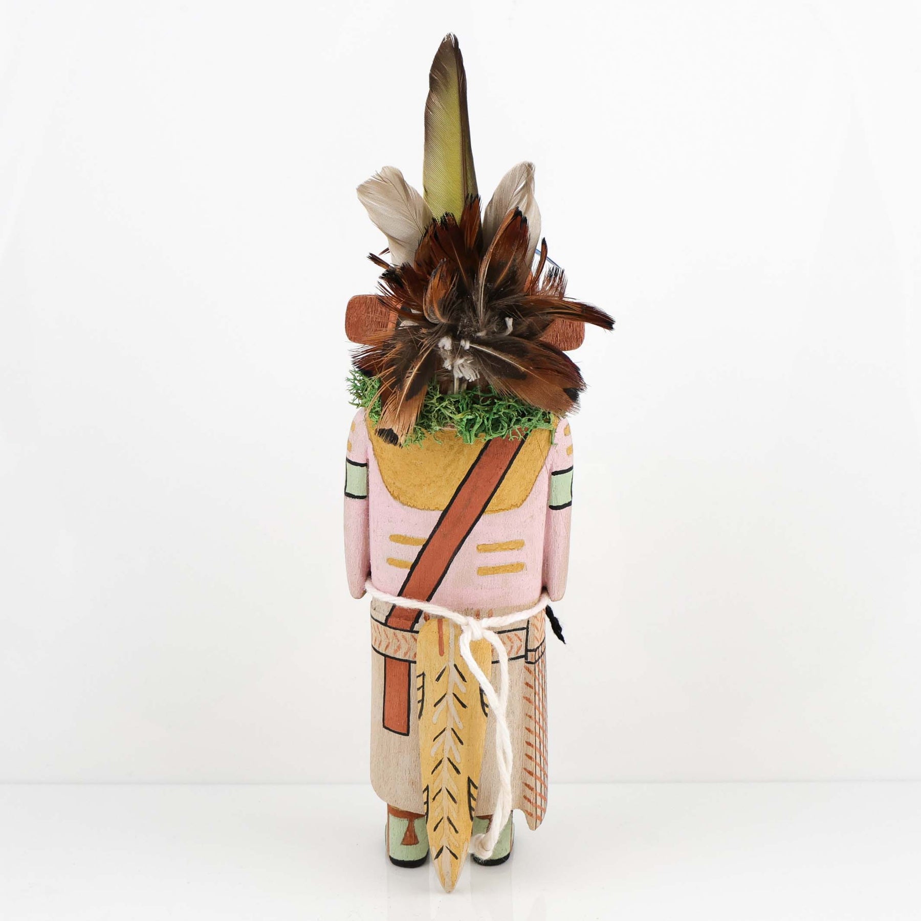 Old-style Kachinas are traditionally made for hanging, and this carving includes a loop on the back for wall display.