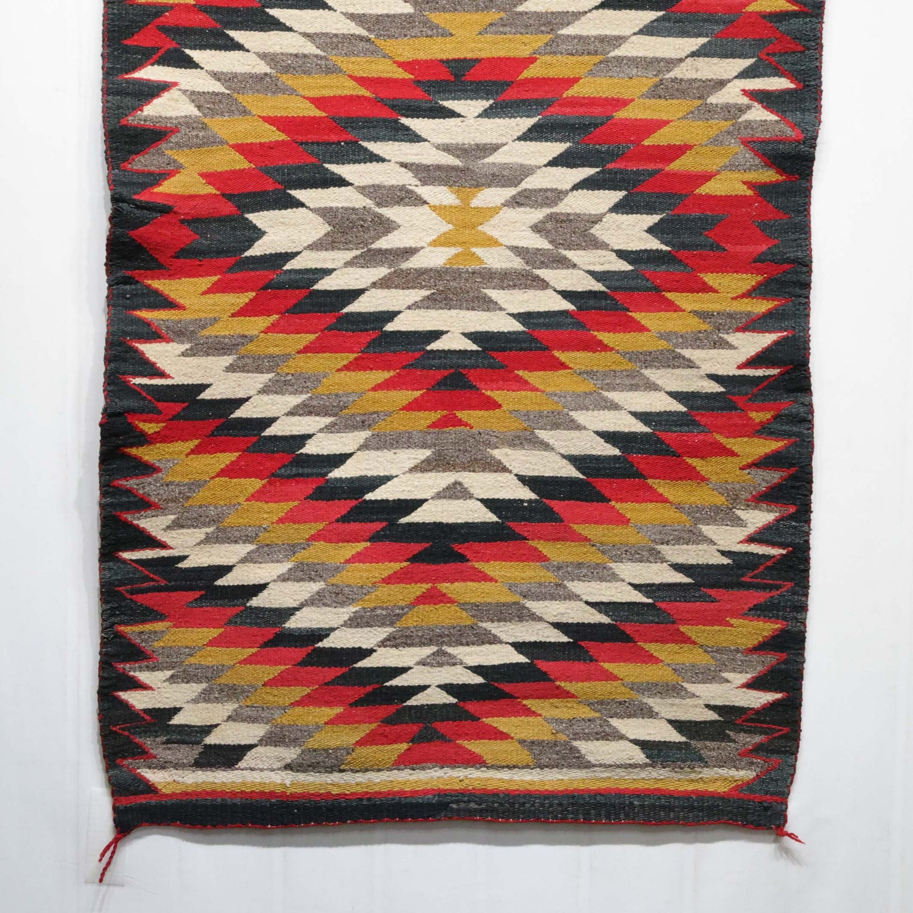 Antique Navajo (circa 1930s) Eyedazzler Weaving with Natural Wool Colors and Bright Aniline Dyes using Homespun Wool.
