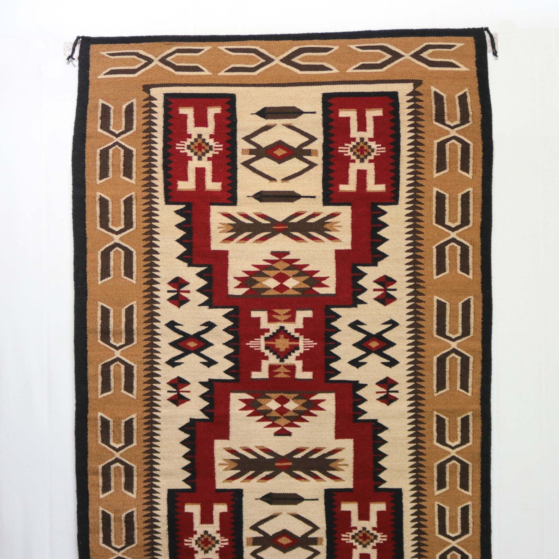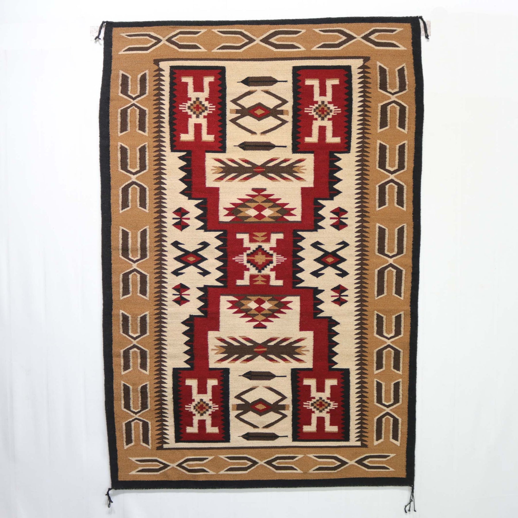 Storm Pattern Weaving with Natural Wool Colors and Aniline Red.