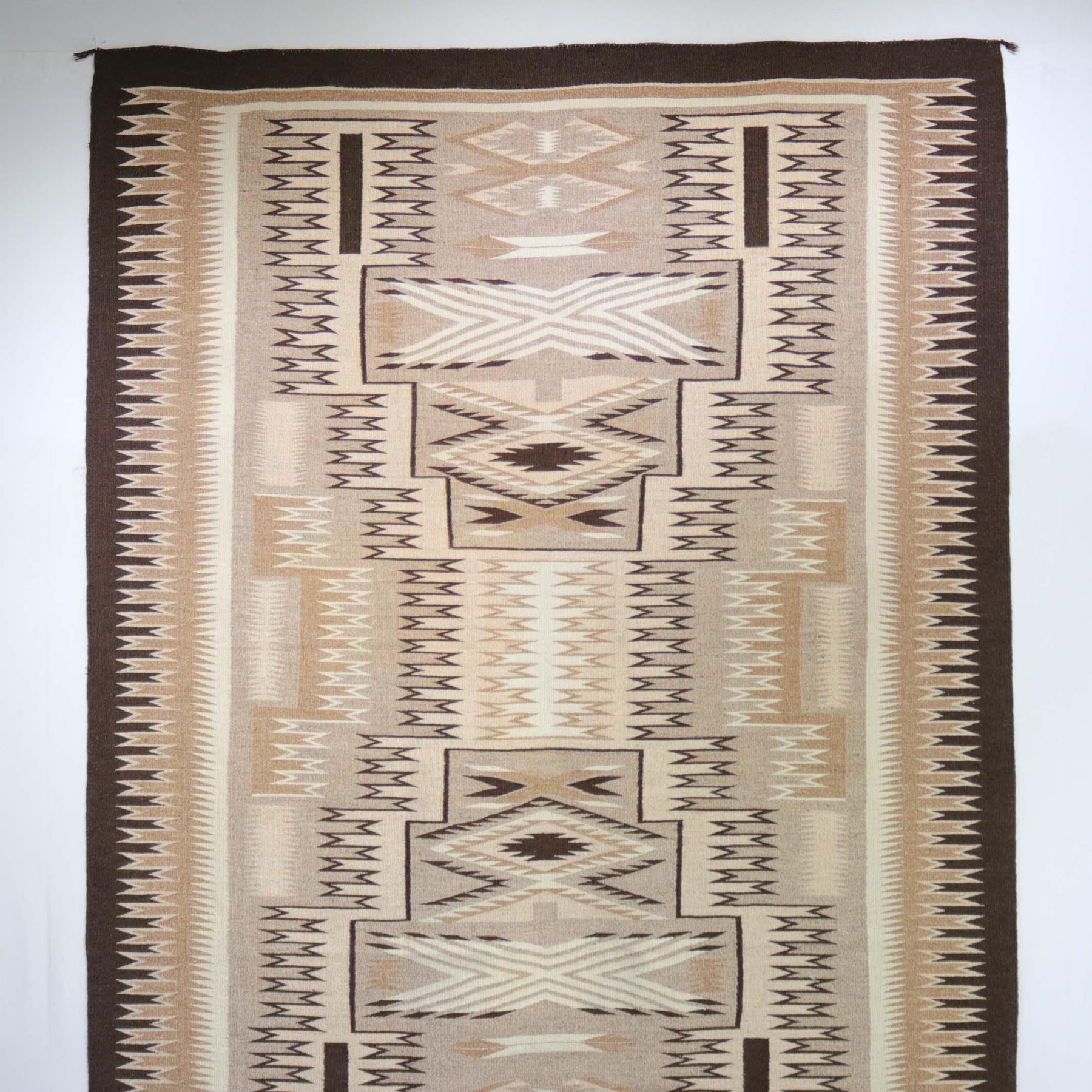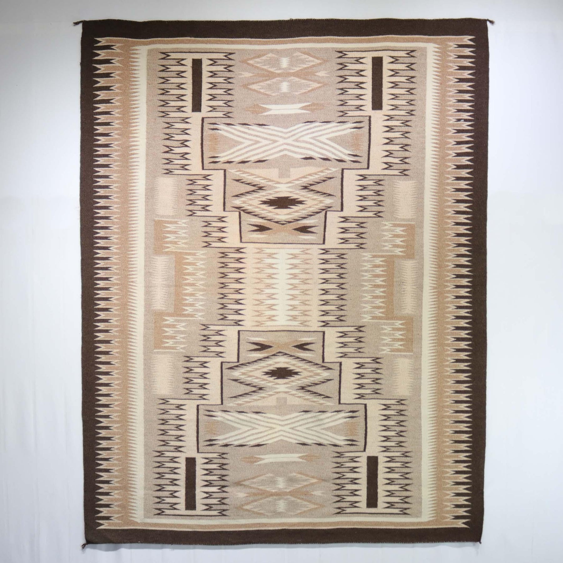 Large Storm Pattern Weaving made with Natural Undyed Wool. This piece was woven by Navajo Weaver, Shirley James in the 1990s.