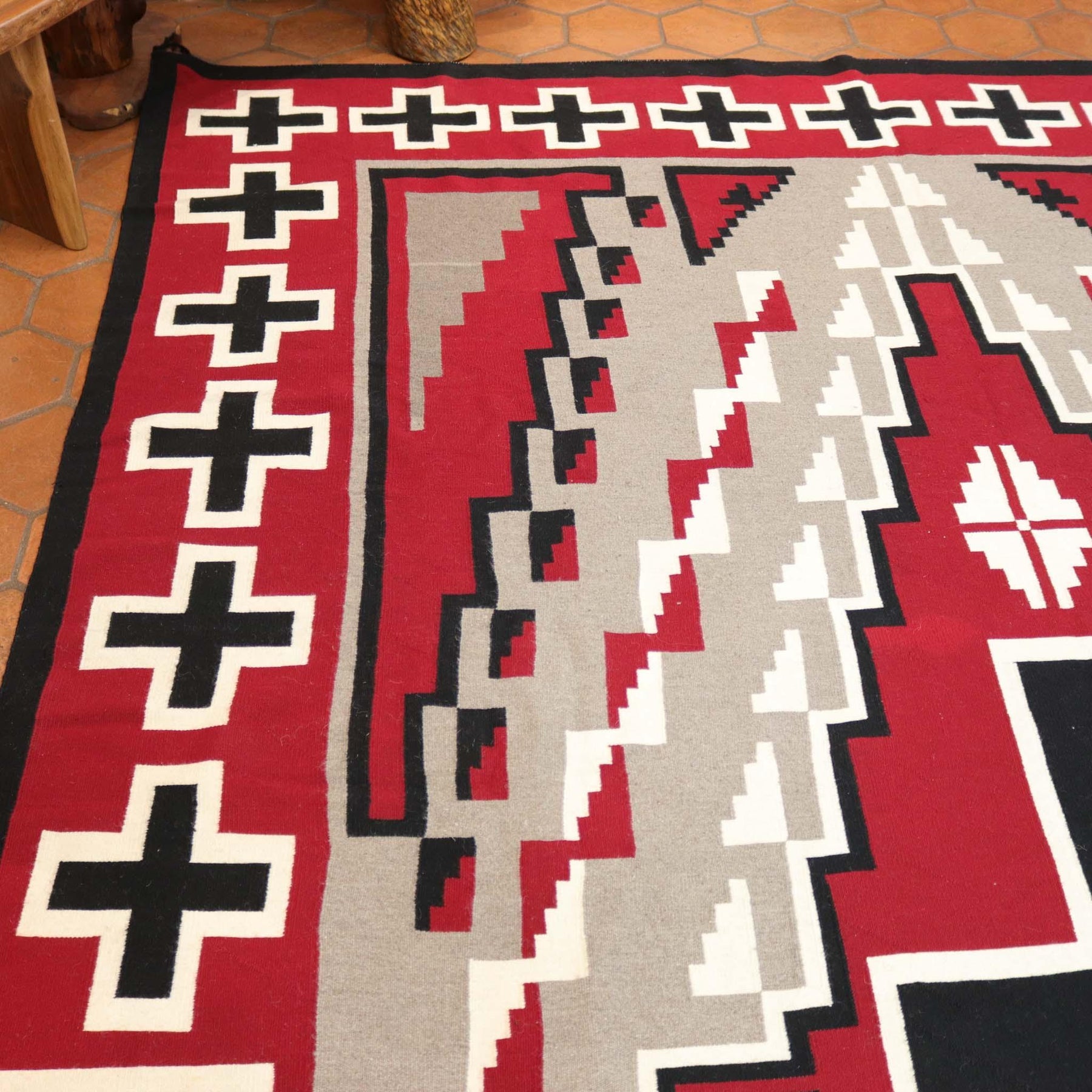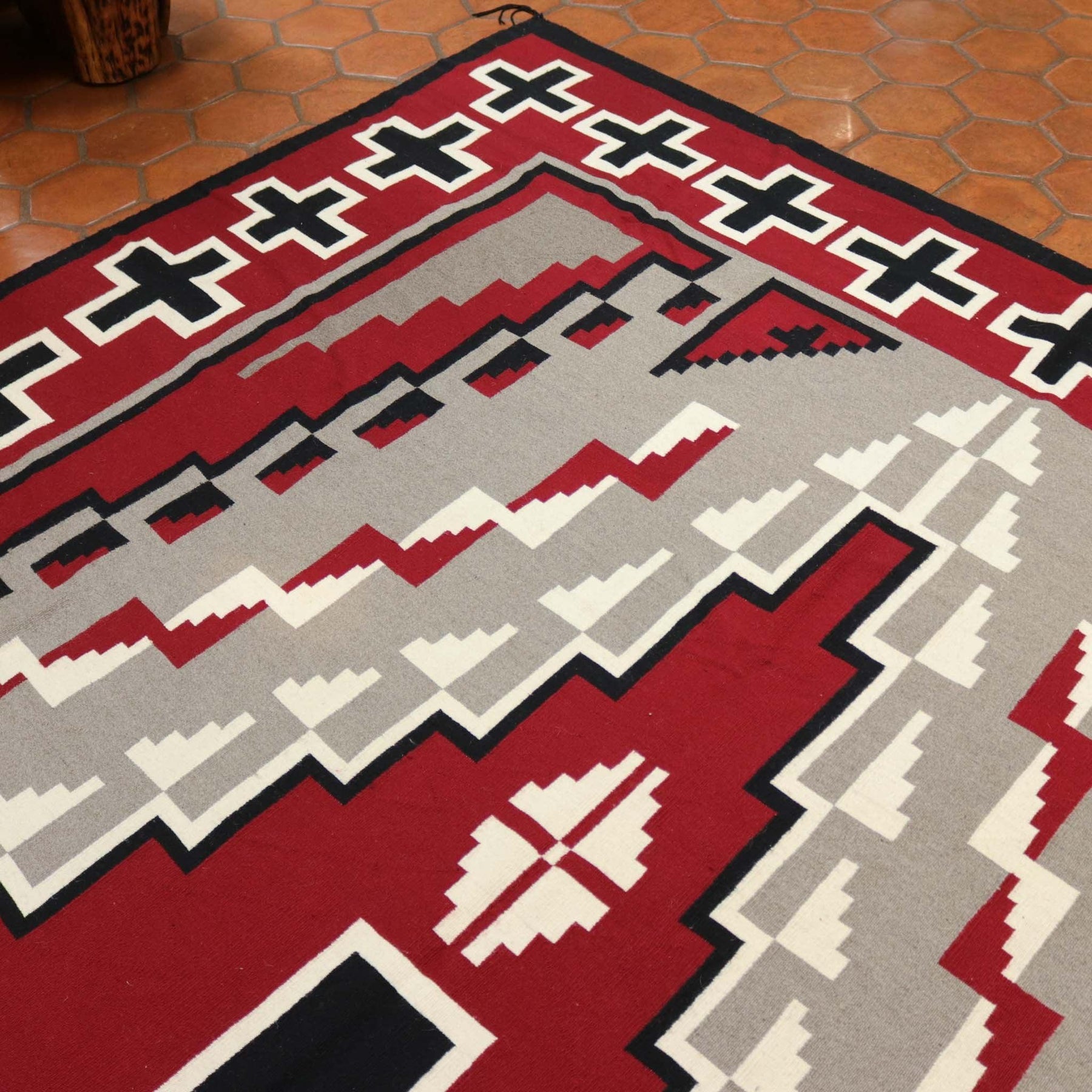 Extra Large Ganado Red Weaving with a Central Diamond Design and a Spiderwoman Cross Border. This stunning piece was woven by Susie Yazzie and her mother Mary Nez from Pinon, Arizona.