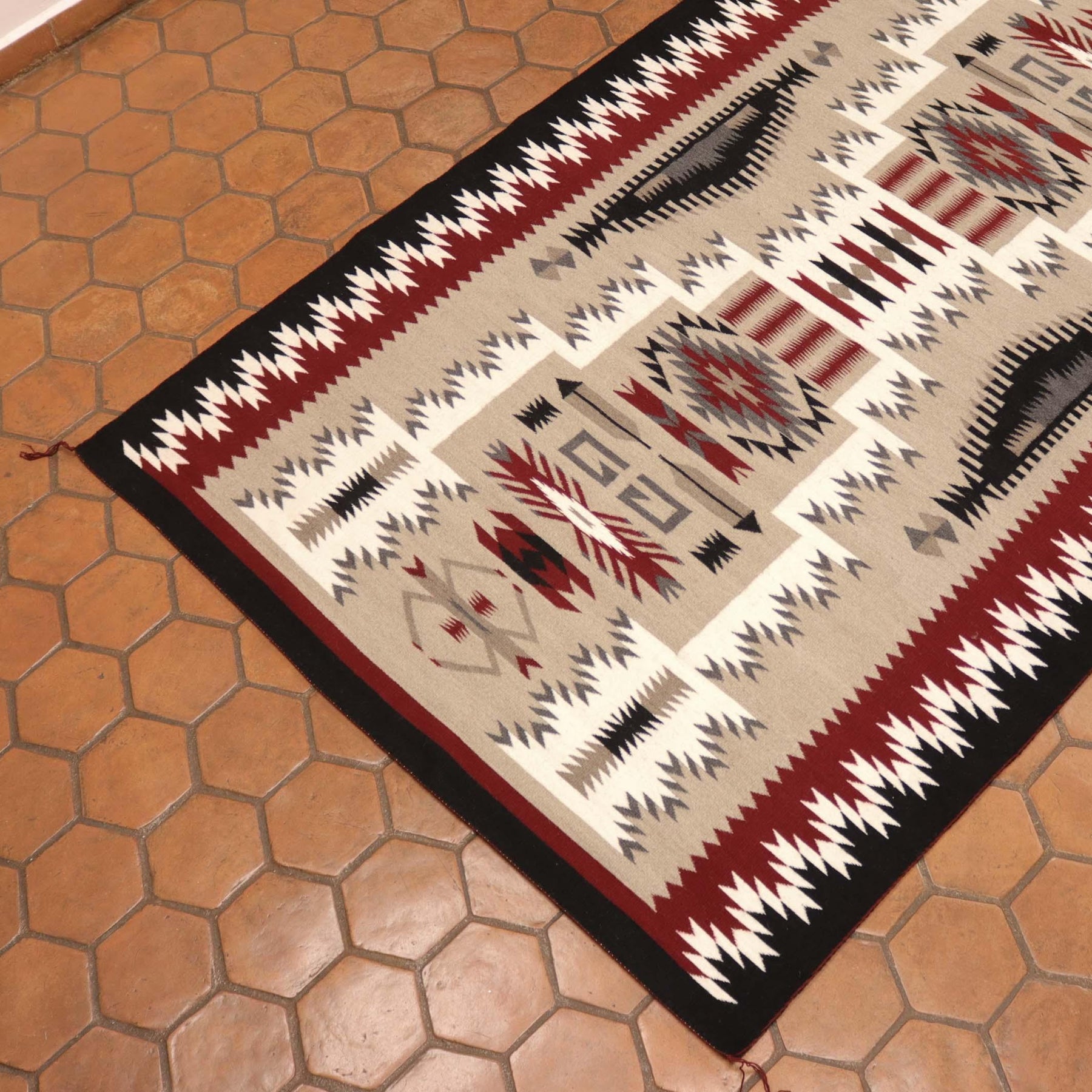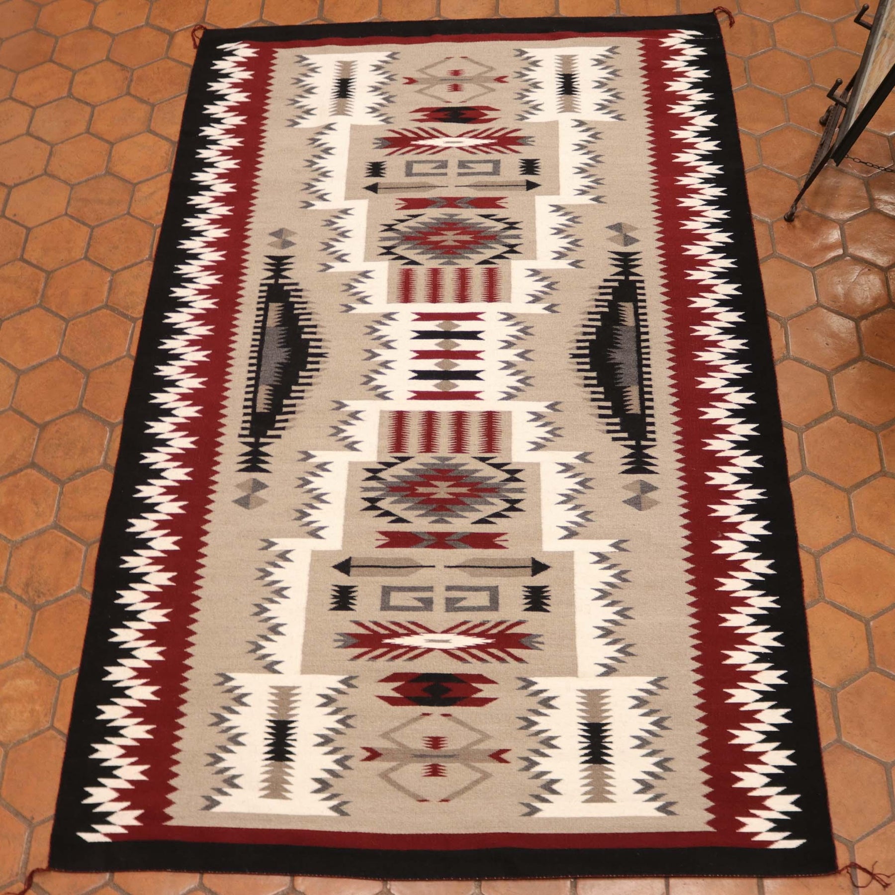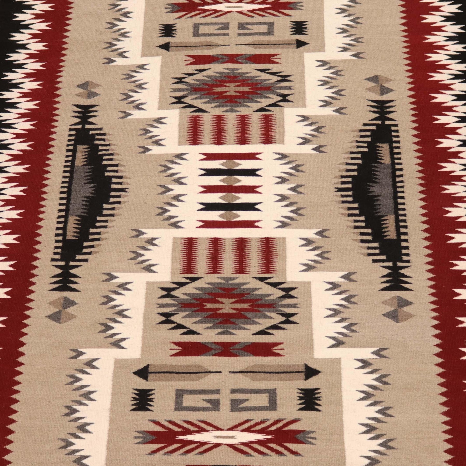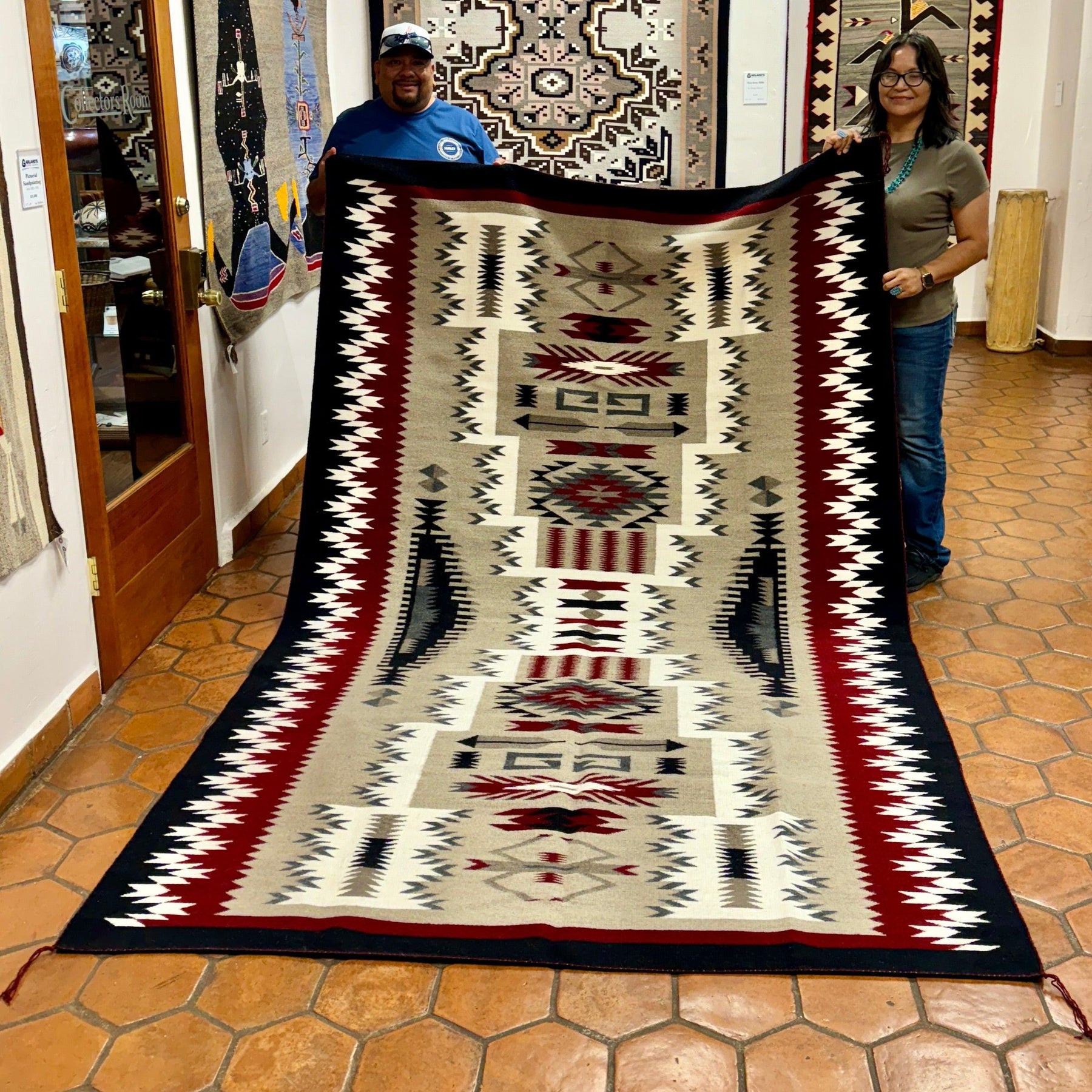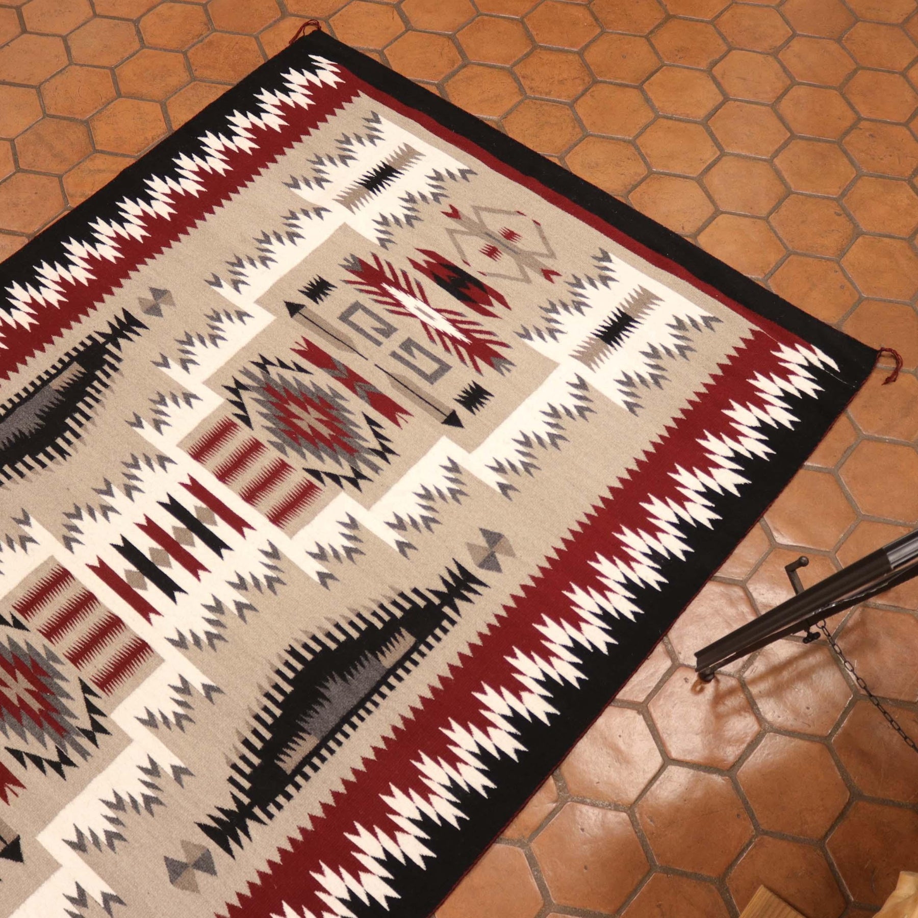 Navajo Storm Pattern Weaving featuring a White Storm Design Element with a Serrated Border.