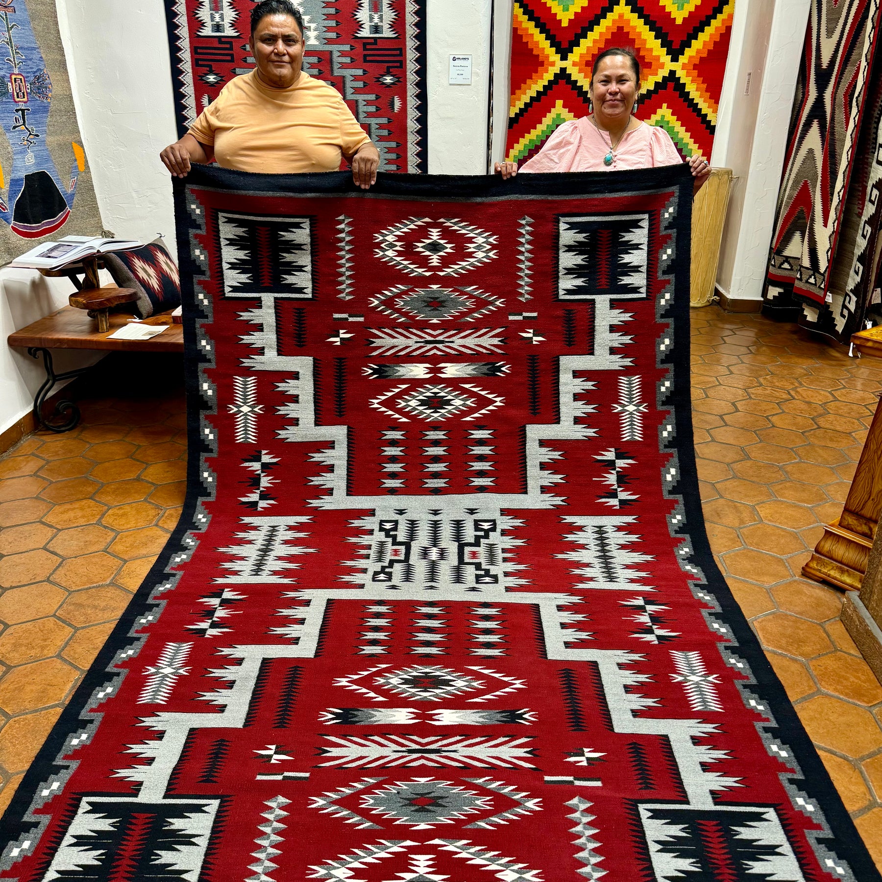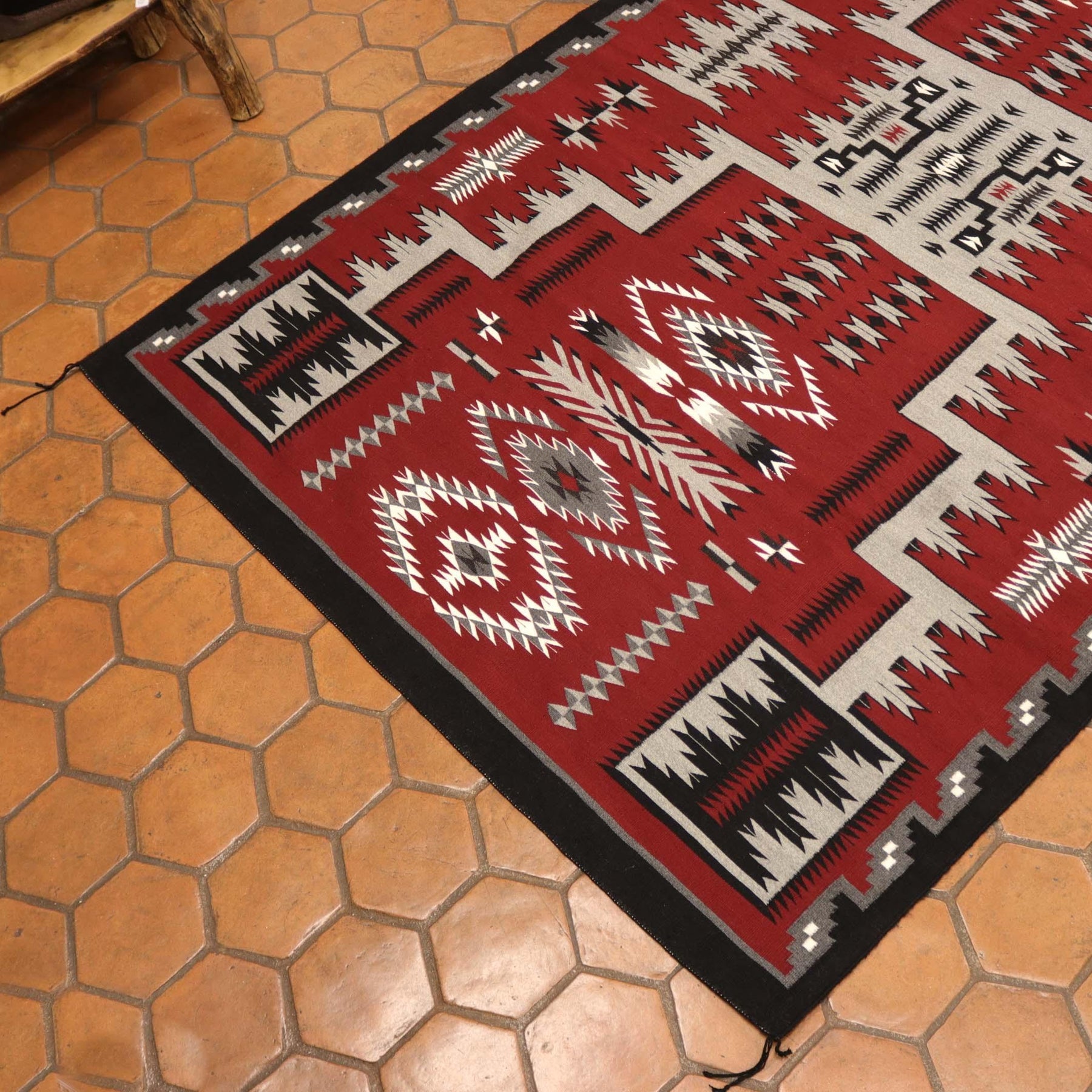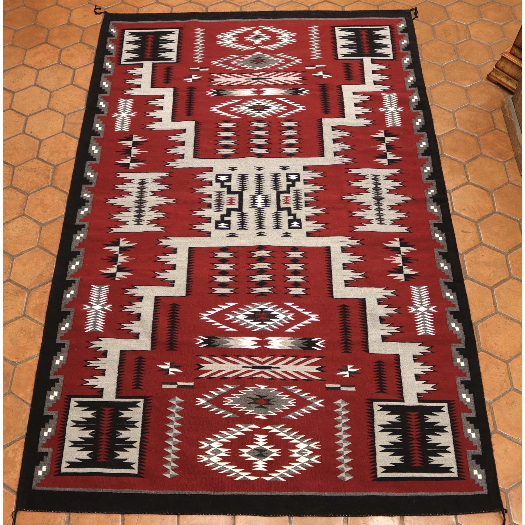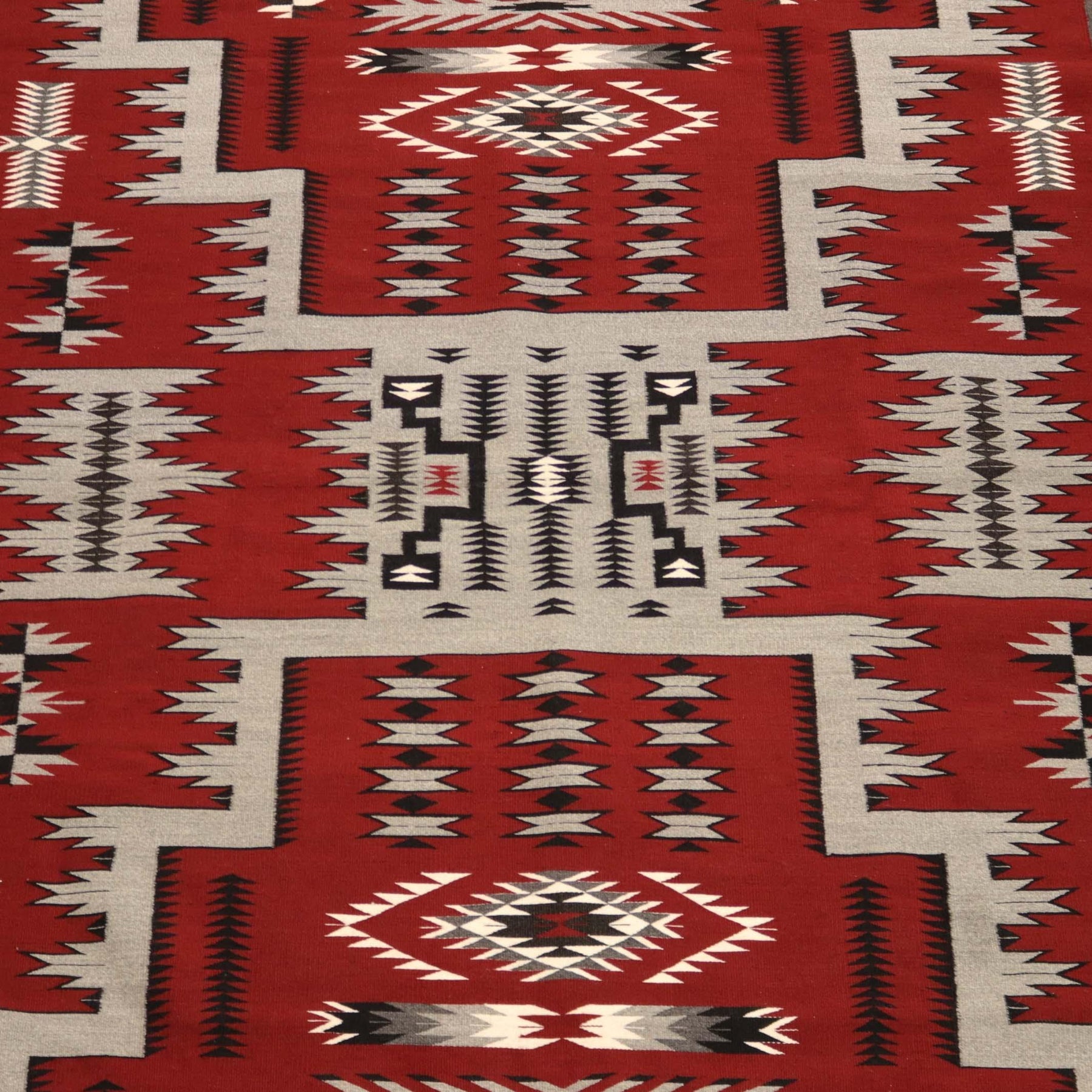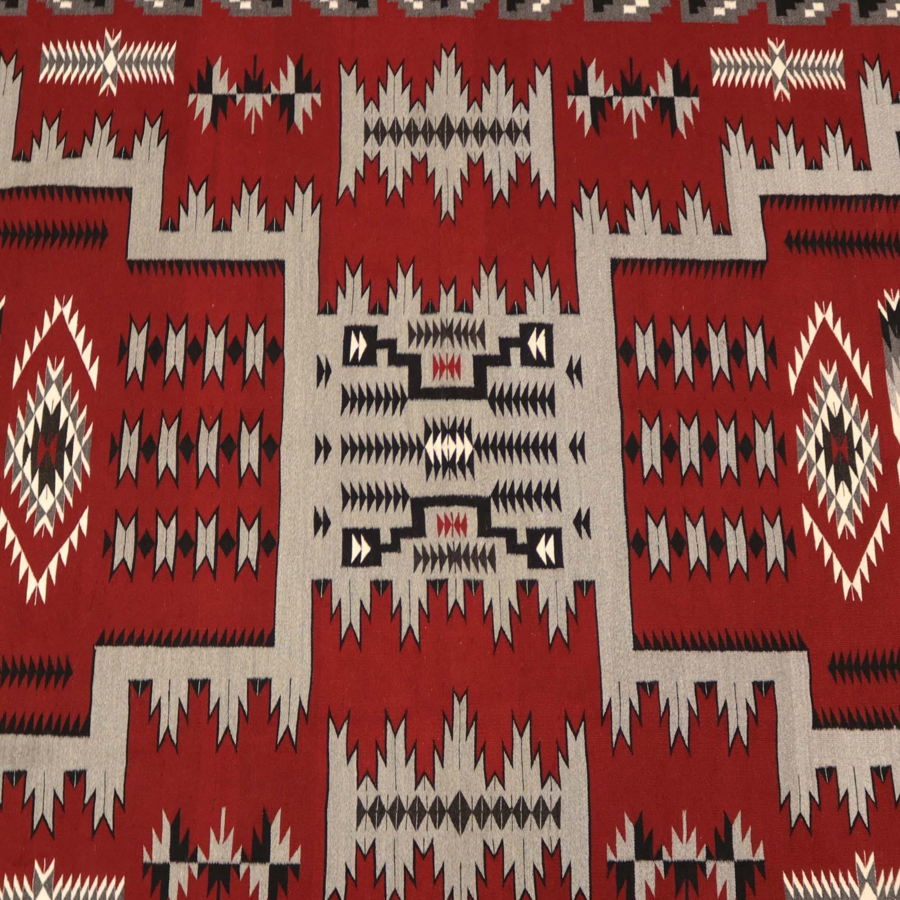 Navajo Weaving with a Storm Pattern Design Element on a Red Background.