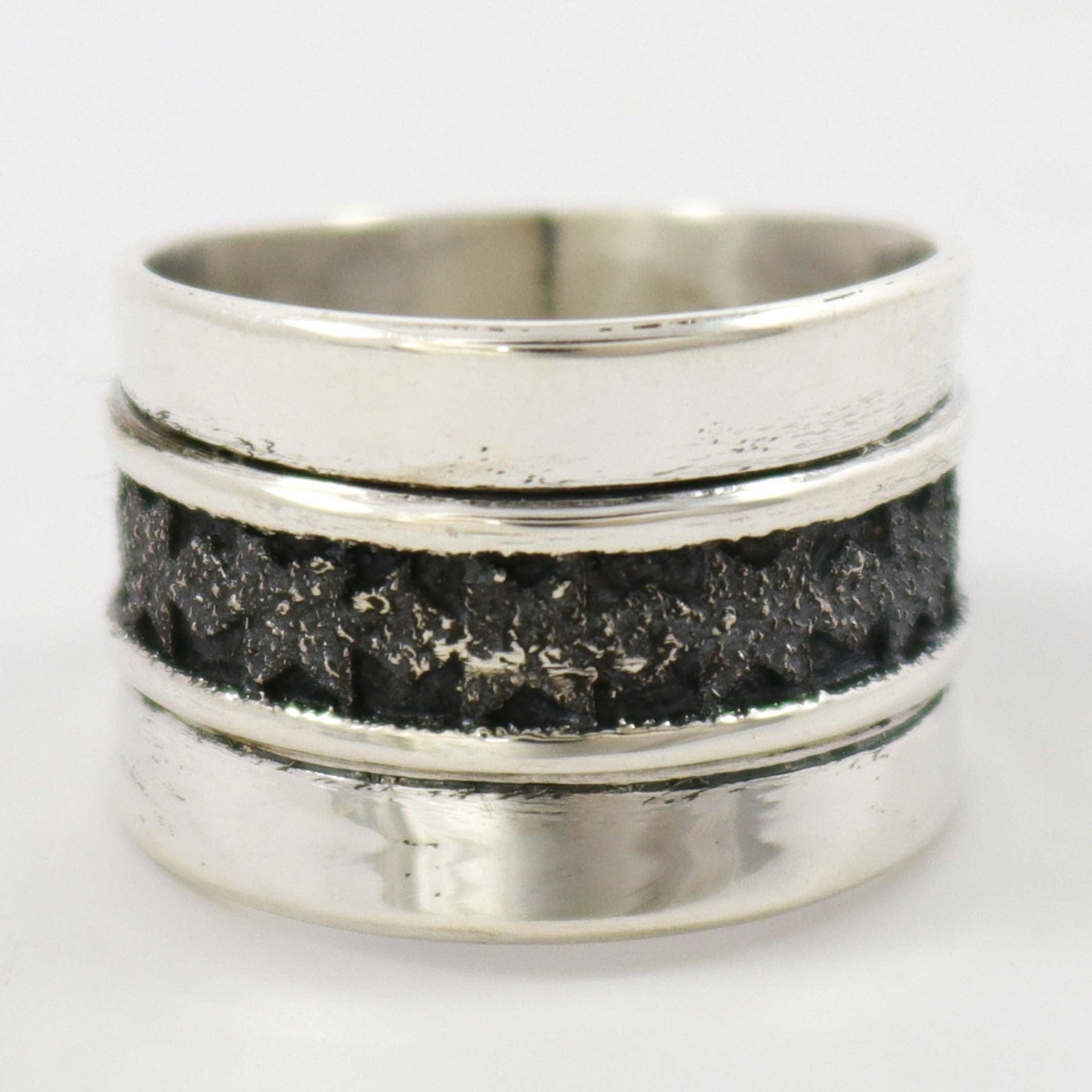 Sterling Silver Ring with Navajo Overlaid Designs.
