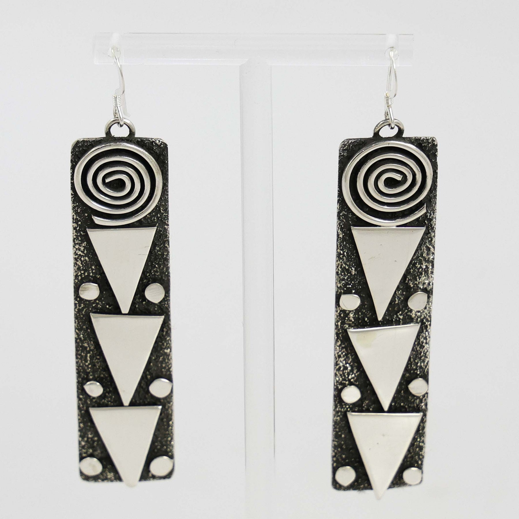 Sterling Silver French Hook Earrings with Appliqué Petroglyph Symbols.