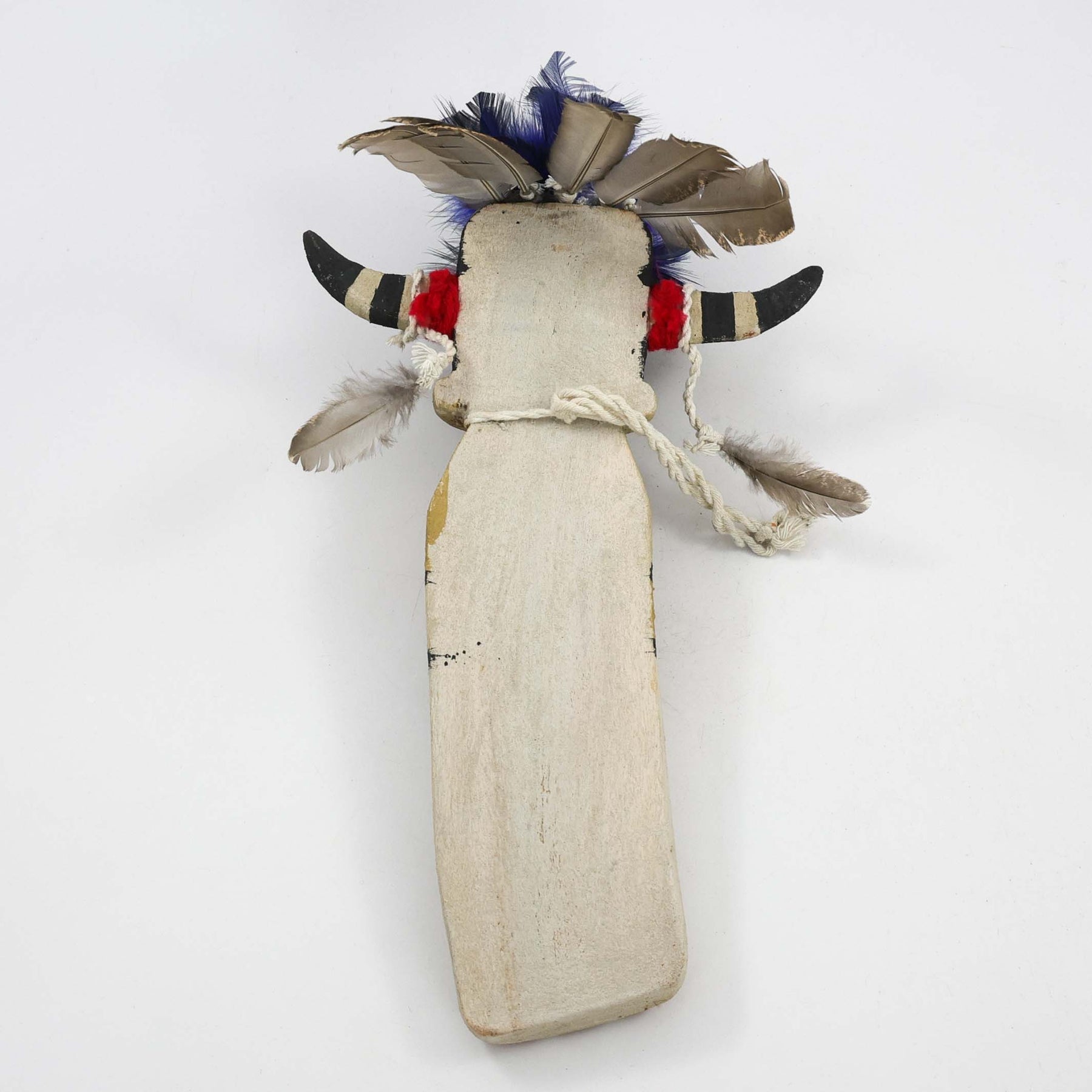 Hand-Carved and Painted Hopi Ho’ote Kachina. Old-style Kachinas are traditionally made for hanging, and this carving includes a loop on the back for wall display.