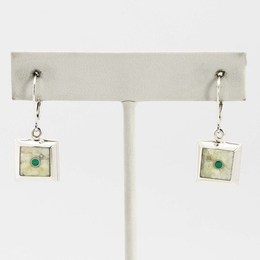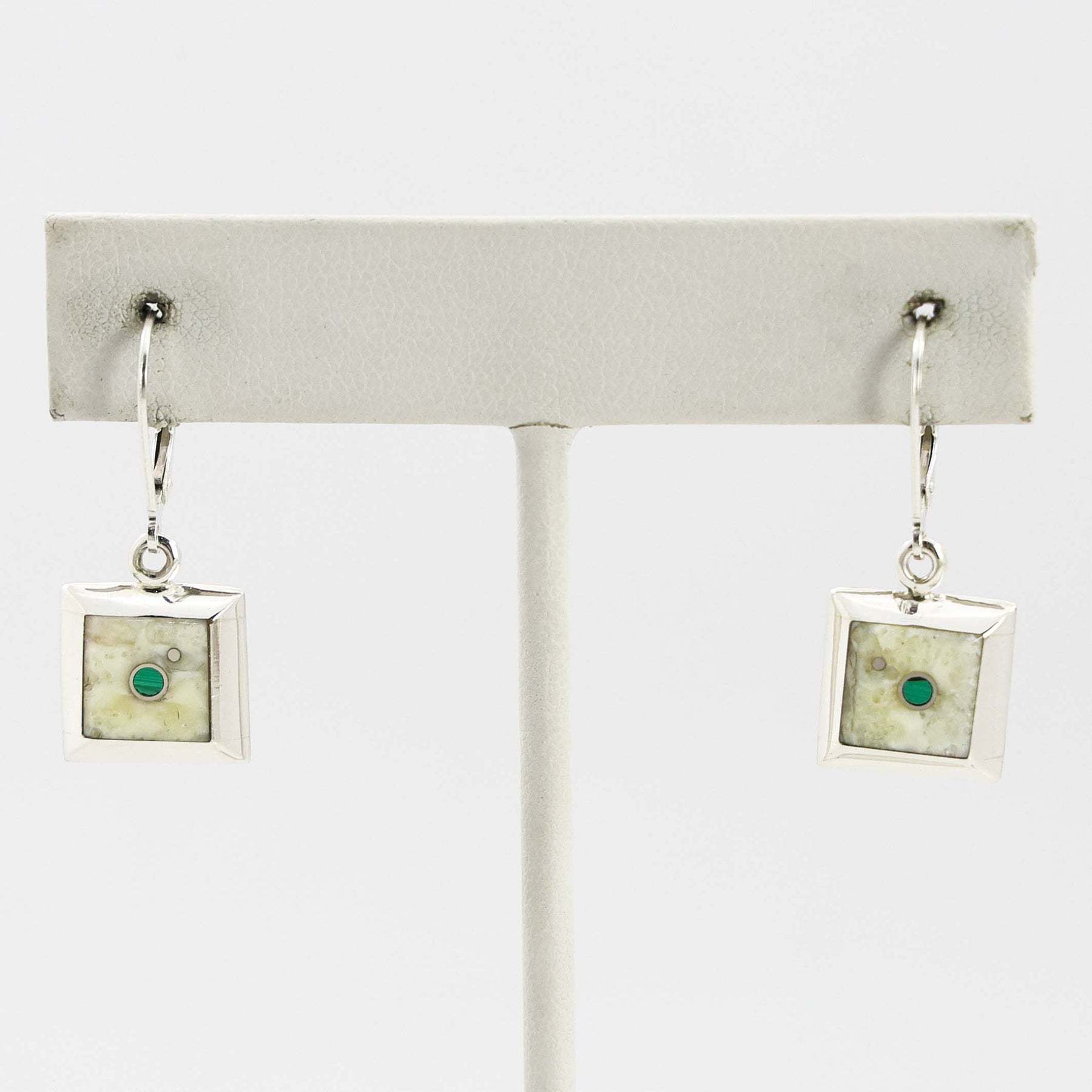 Sterling Silver Lever Back Dangle Earrings with Inlaid White Marble and Turquoise.