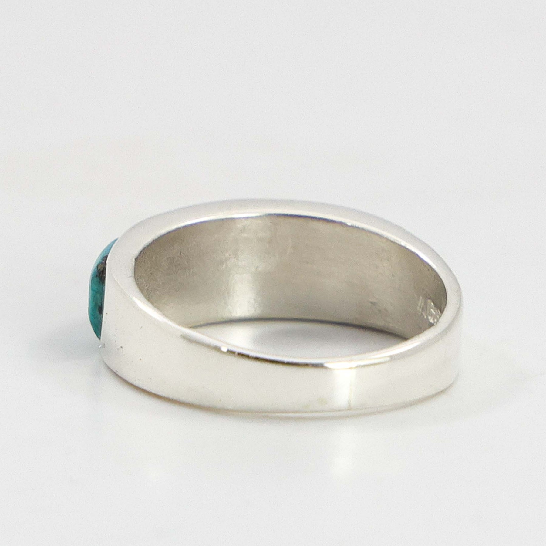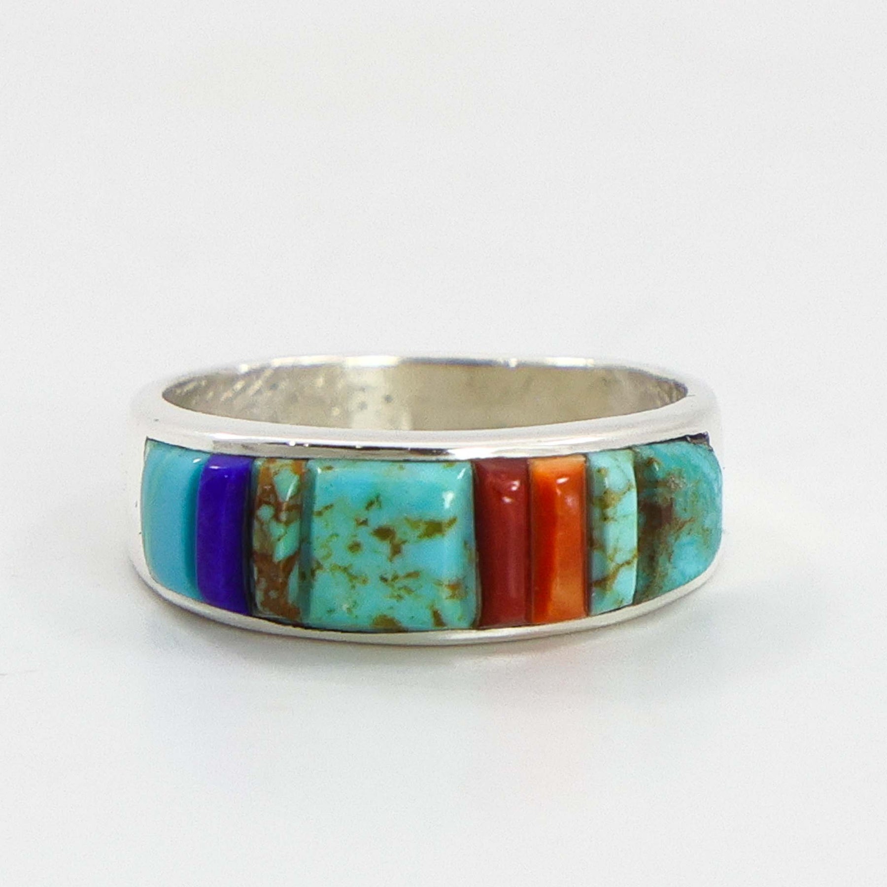 Sterling Silver Ring with Cobble Inlaid Turquoise, Coral, Spiny Oyster Shell, and Lapis.