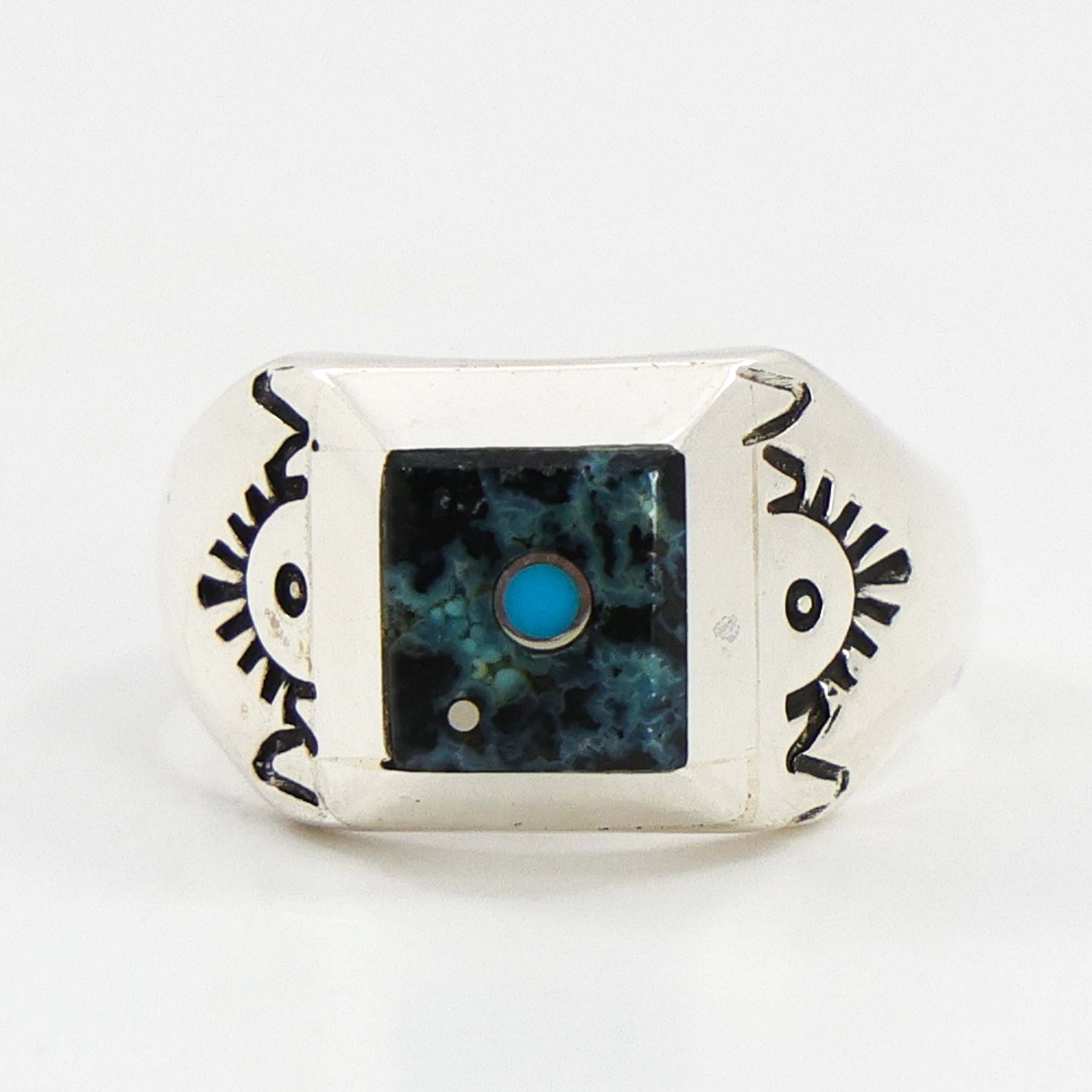 Sterling Silver Ring with Inlaid Turquoise.
