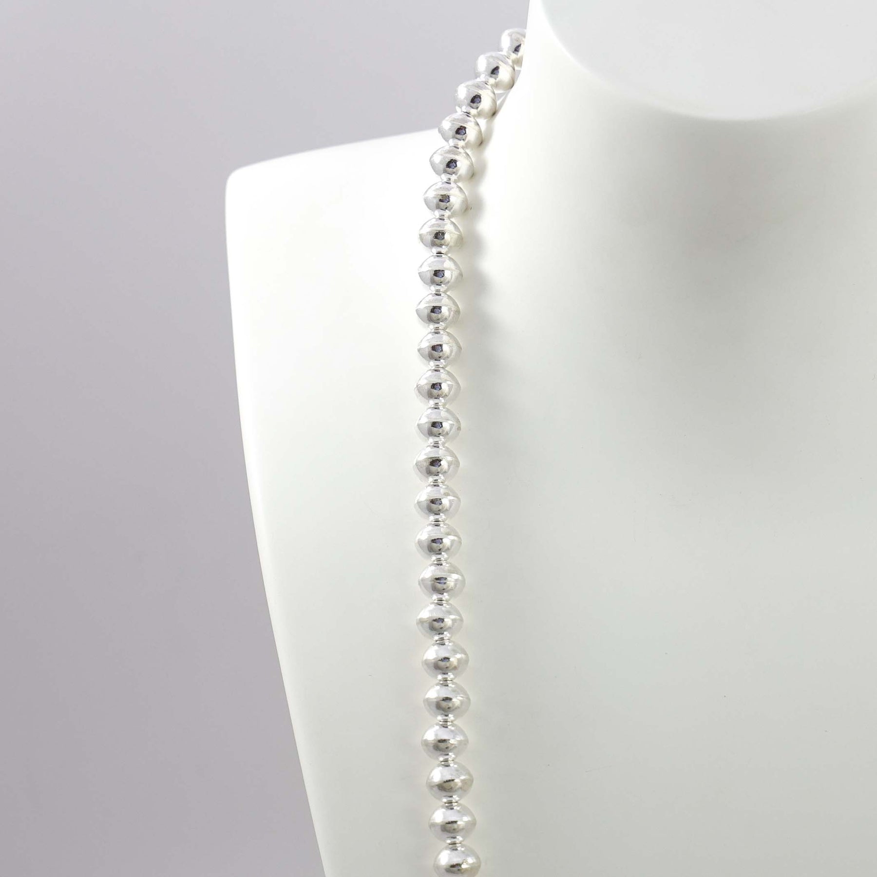 Sterling Silver Navajo Pearl Necklace with Handmade Beads in a High Polish Finish.