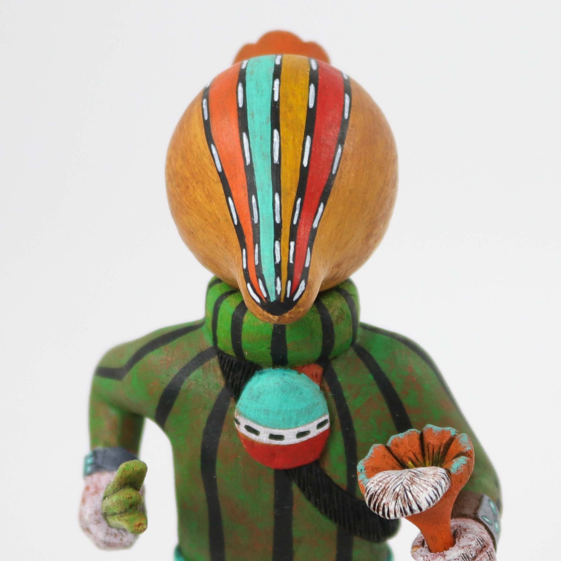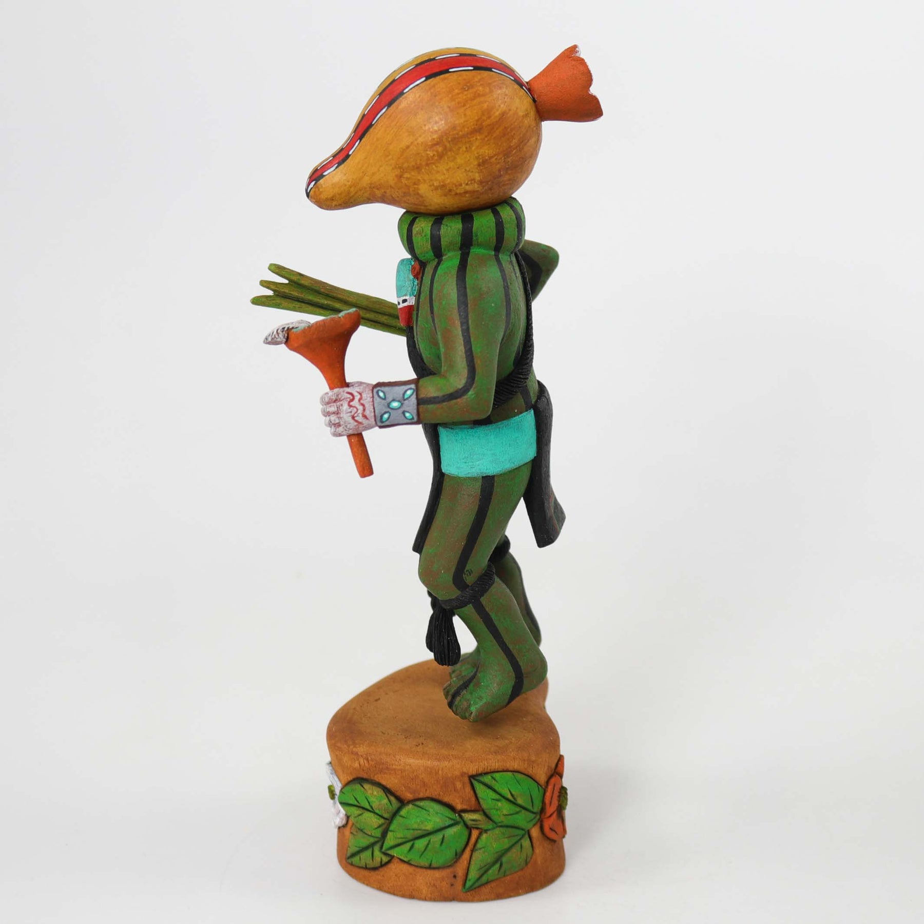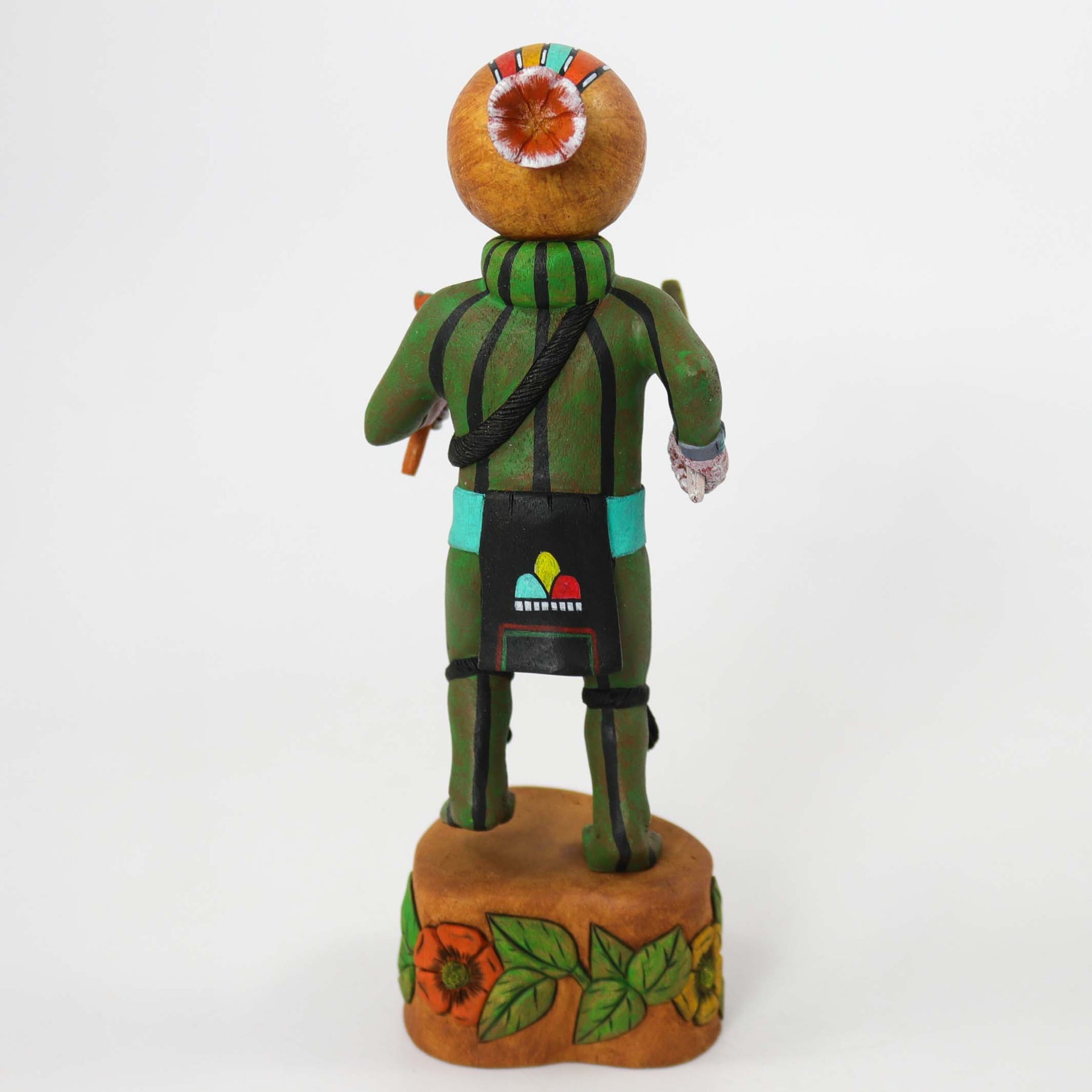 Hand-Carved and Painted Hopi Squash (Patung) Kachina Holding a Flower and Yucca Stalk.
