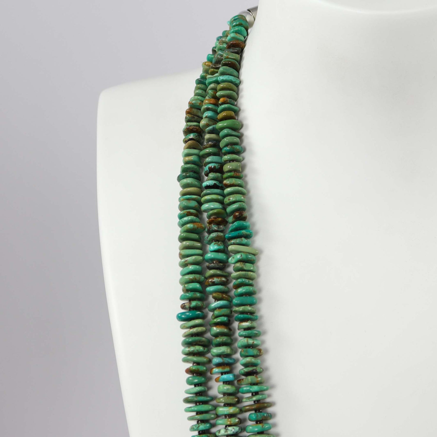 Three-Strand Necklace with Stabilized Kingman Turquoise Beads and a Sterling Silver Clasp.