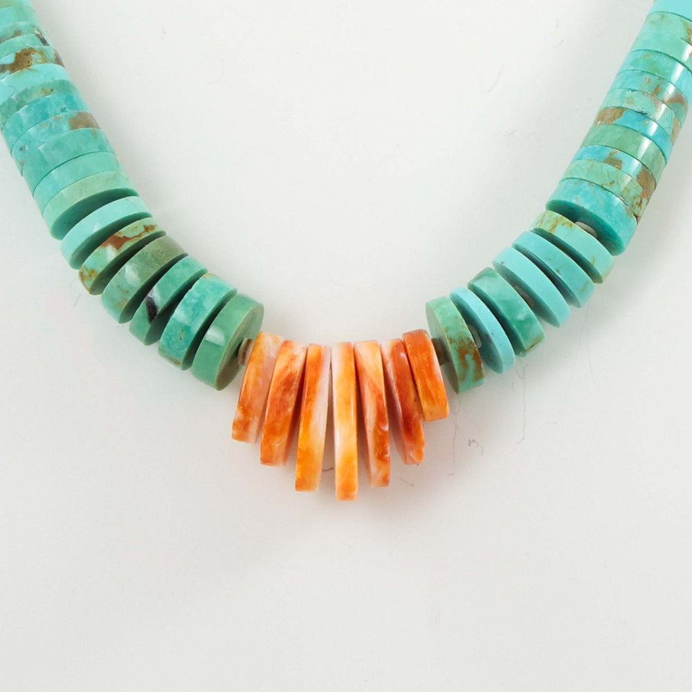 Turquoise and Spiny Oyster Necklace by Joe and Angie Reano - Garland's