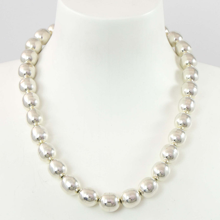 A beautiful collection of stone and metal beads. Each tribe specializes in different types of beads, from Navajo Pearls to Santo Domingo Heishi. Stone beads are made by hand cutting the raw material into squares, after which holes are drilled through the center. Strung together, the rough squares are hand shaped against a turning stone wheel. In the process, 60 – 70% of the original material is lost. For metal beads, artists make each half of the bead individually by hammering a sheet of metal against a semi-circular depression in a steel/iron plate. The two bead halves are delicately soldered together to create a continuous form.