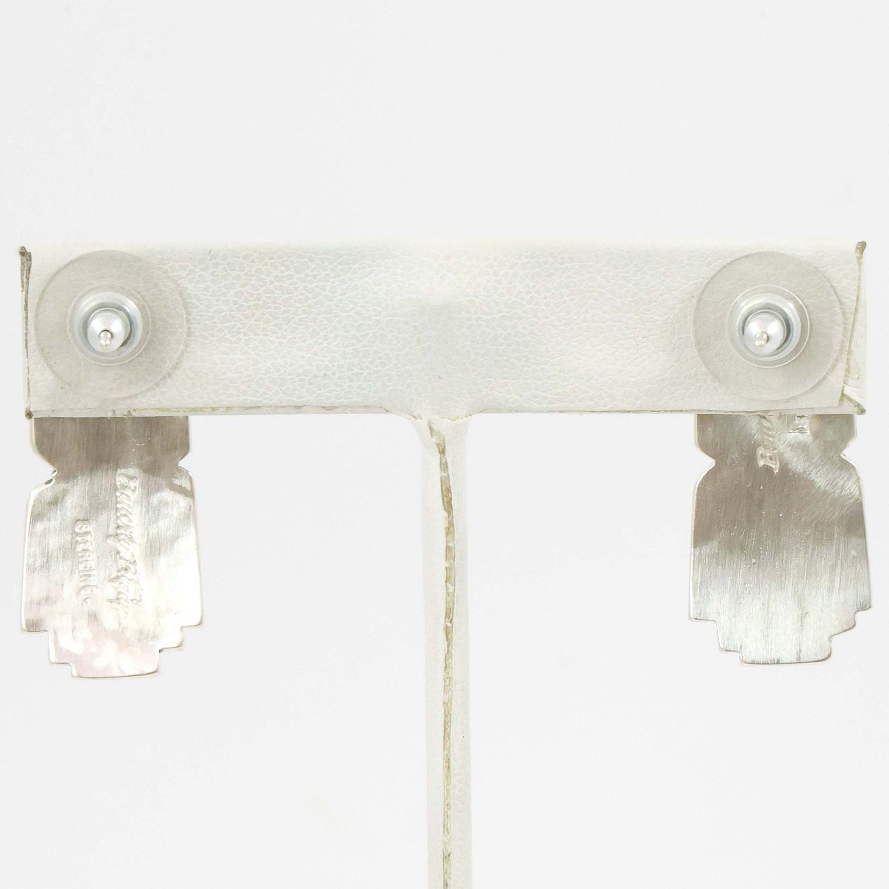 Sterling Silver Post Button Earrings with Mosaic Inlaid Kingman Turquoise and Jet. These earrings also feature Navajo overlaid designs.