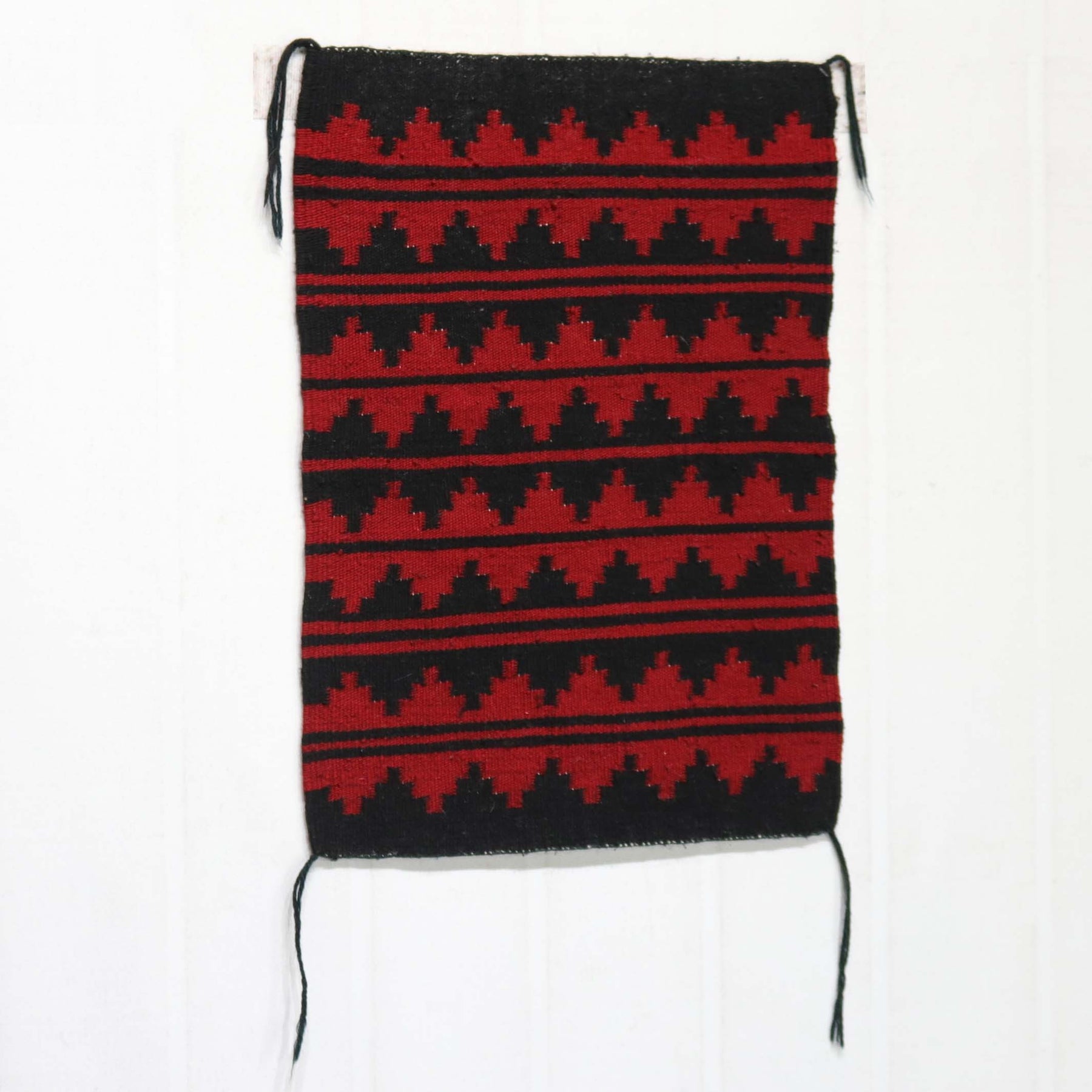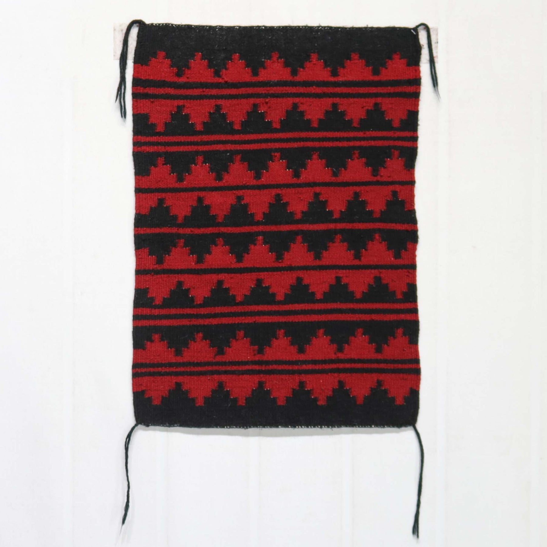 Blanket Revival Weaving with a Banded Design in Black and Red.