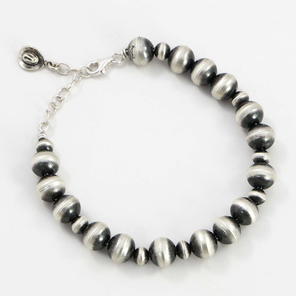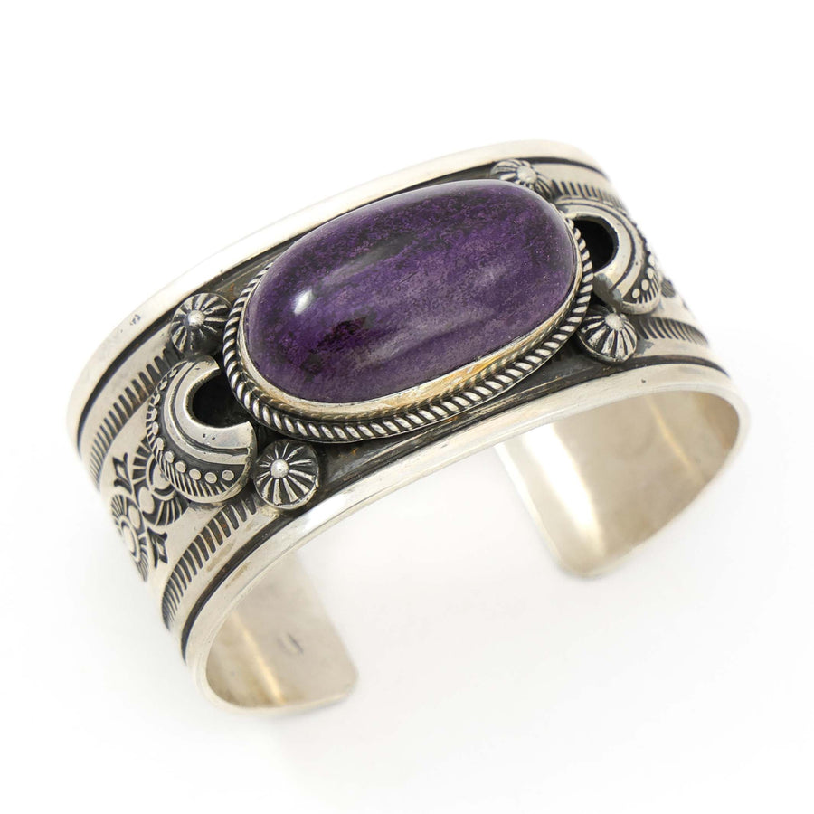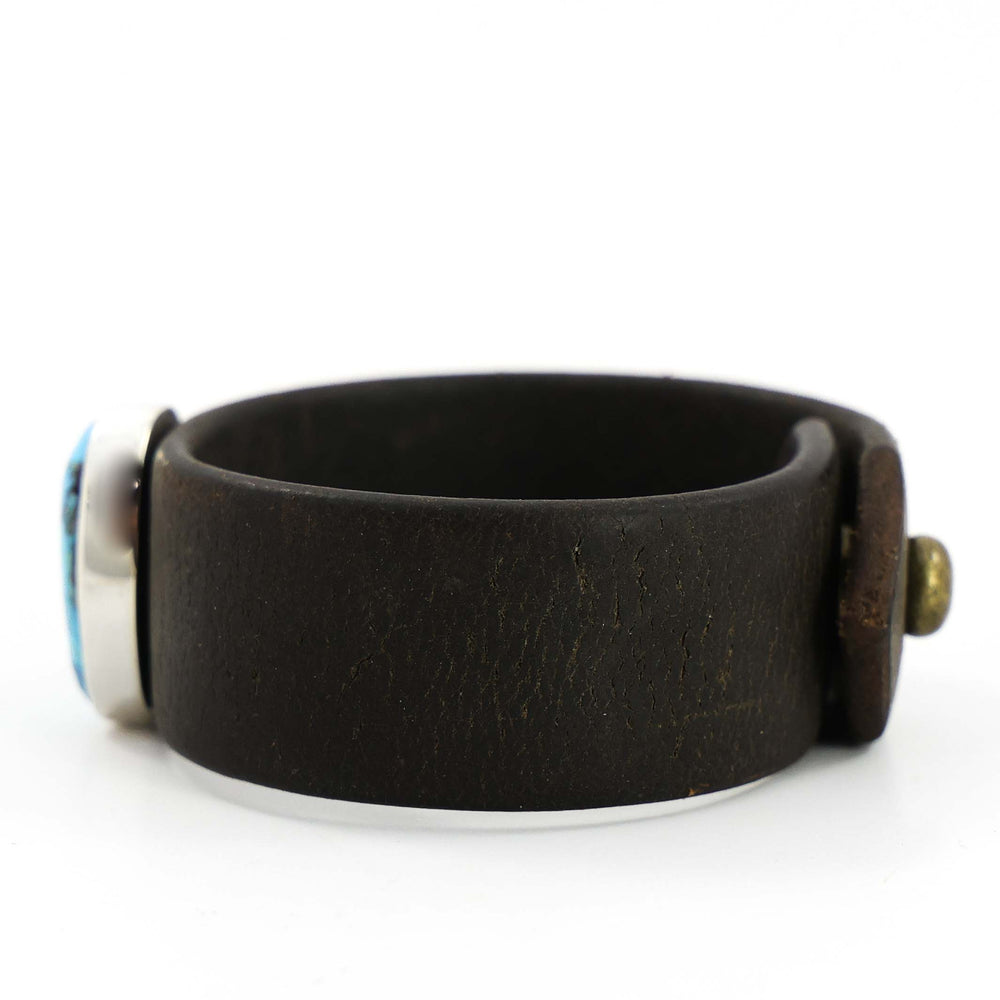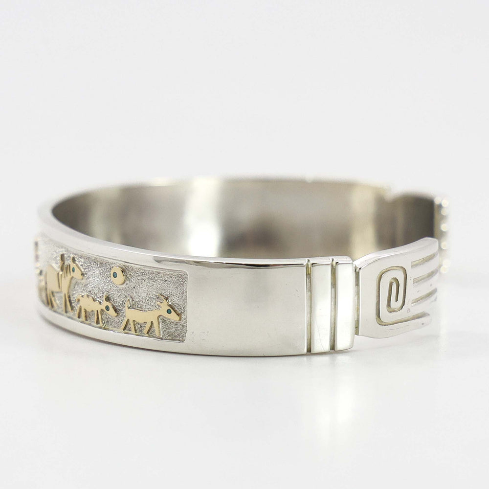 Bracelets are perhaps the most recognized form of Southwestern jewelry. Popular for their diversity in design, we see three primary forms of bracelets: cuffs, link bracelets, and bangles. Cuffs are the most traditional type of bracelet for Southwest Native American silversmiths. Cuffs are rigid metal bracelets that are slipped onto the wrist through an opening. Link bracelets encircle the wrist and are fastened with a clasp. Bangles are rigid, full-circle bracelets that are slipped on over the hand and worn loosely on the wrist. When silversmithing was introduced to the Southwest in the mid-1800s, initially bracelets were all silver, cast or hand hammered into form. By the 1880s, the technique of setting turquoise in silver was introduced and bracelet designs would change forever.