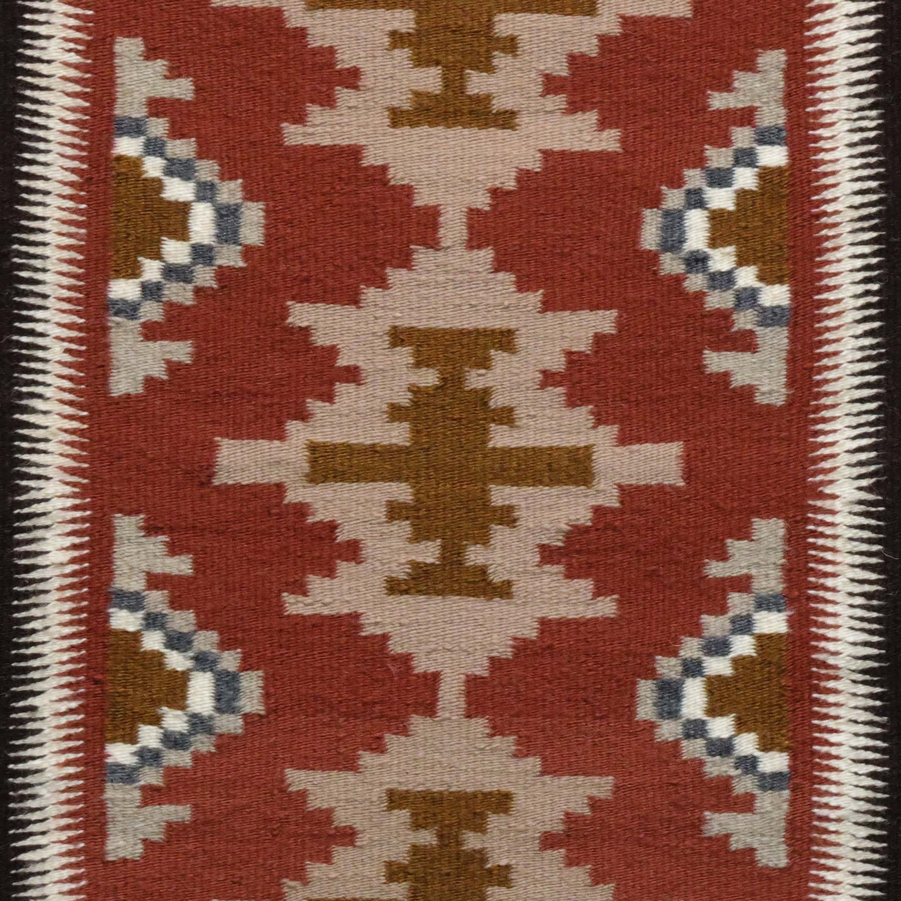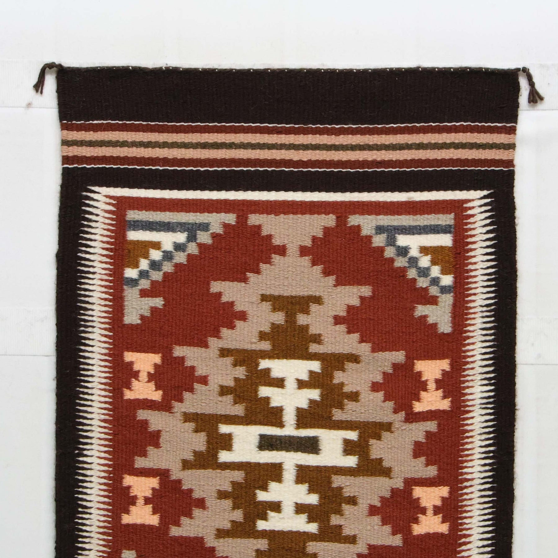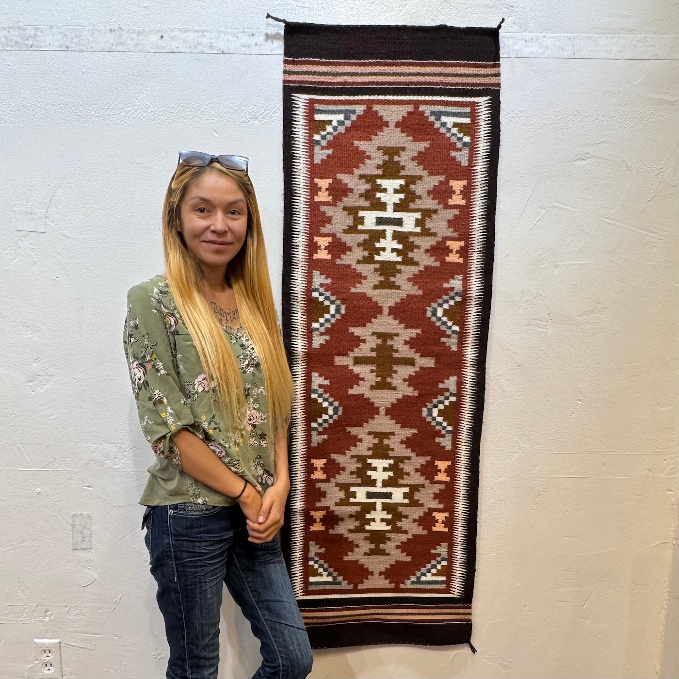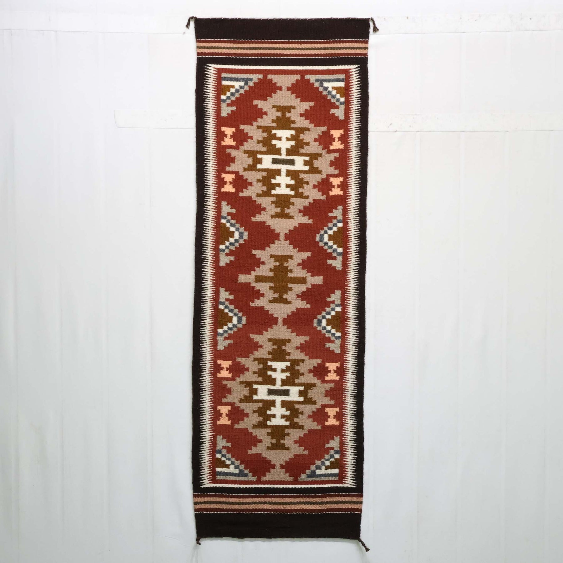 Handwoven Navajo Burntwater Runner Weaving with Warm Earth Tones.