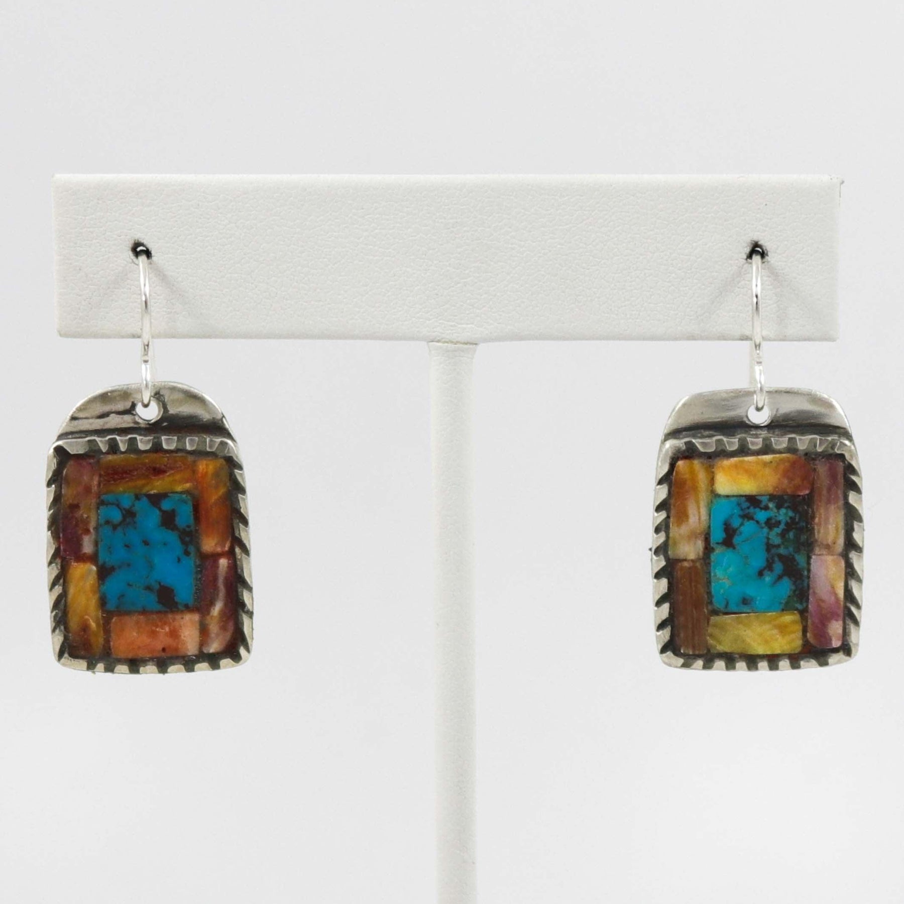 Sterling Silver French Hook Earrings with Mosaic Inlaid Turquoise and Spiny Oyster Shell.