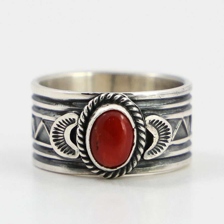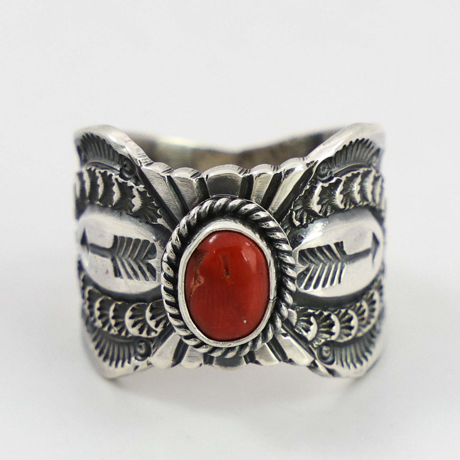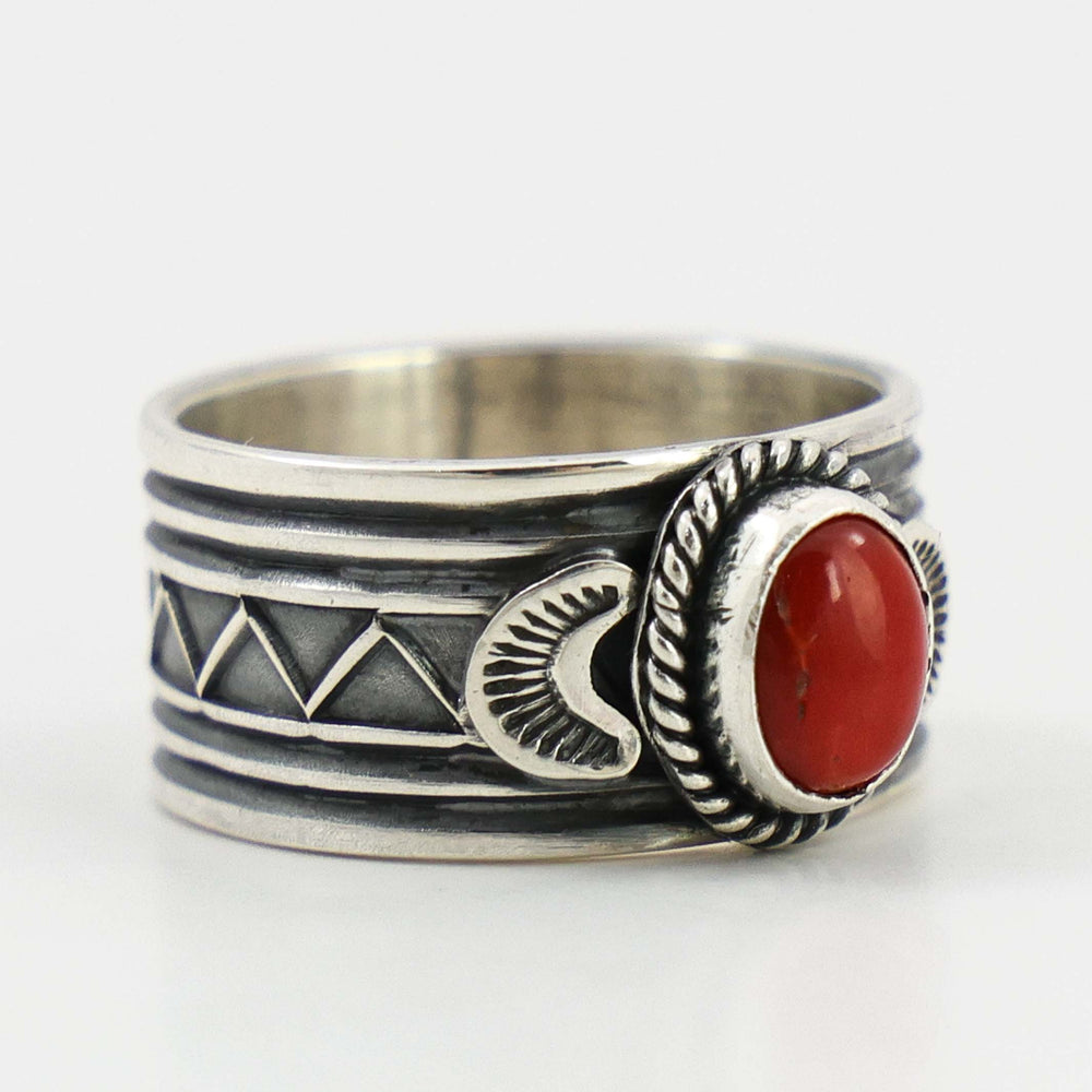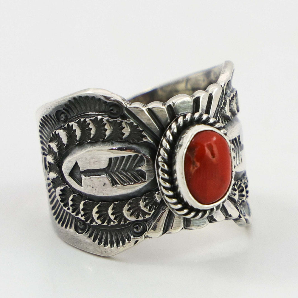 Coral refers to several species of marine coral including corrallium rubrum. Jewelry-grade coral is known for its bright red or pink skeletons that can be polished to a brilliant shine. The highest quality red coral comes from the Mediterranean Sea. Southwest Native American tribes first encountered this deep red Mediterranean Coral from contact with the Spanish in the 1600s. Coral quickly became a valuable trade item, and over time, the Puebloan tribes (particularly Zuni) and the Navajo (Diné) began featuring coral in their jewelry. Coral was seen as a symbol of wealth and status due to its rarity and high cost.