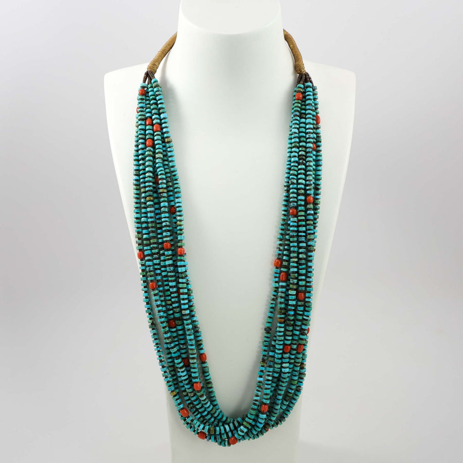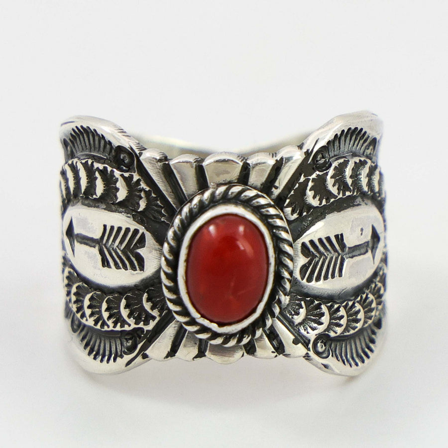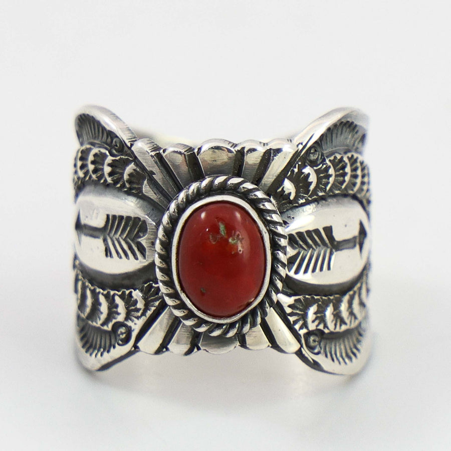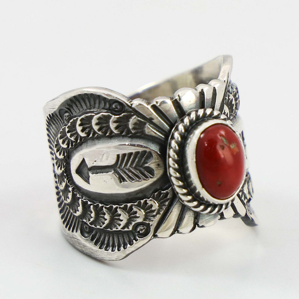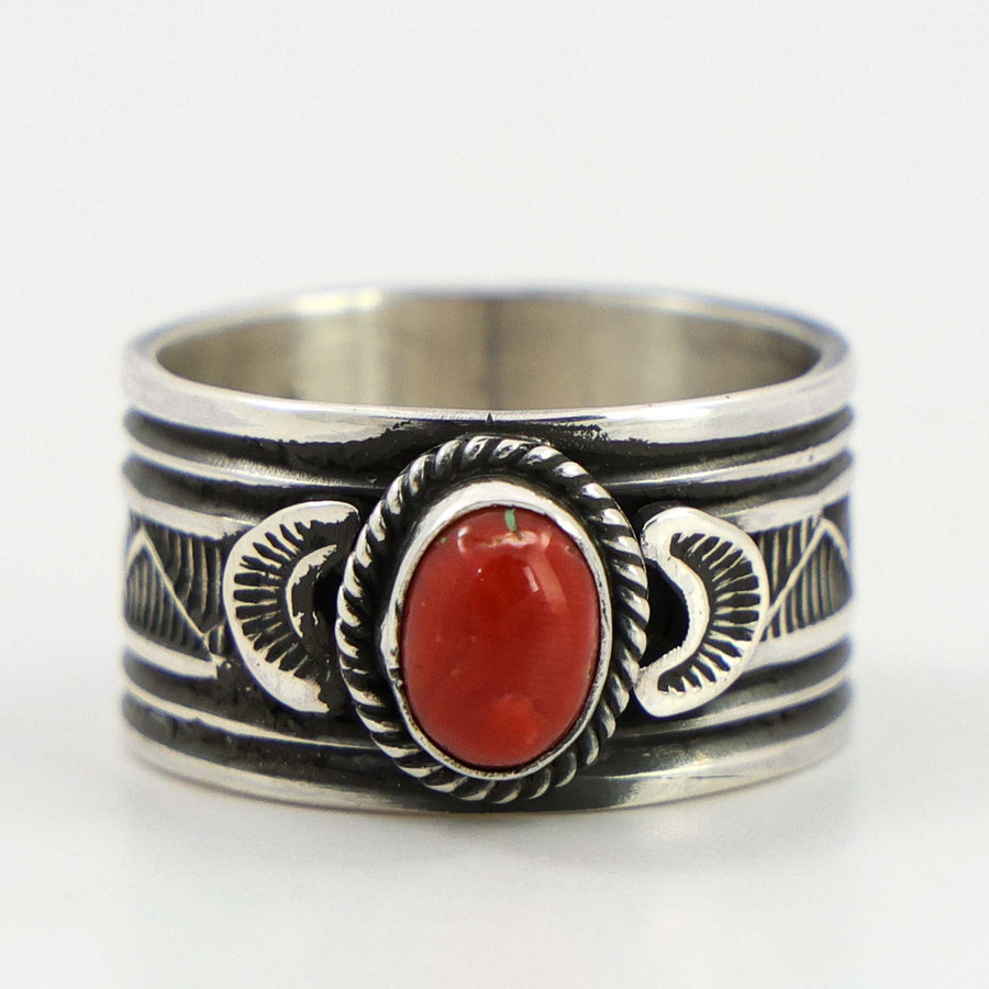 Coral refers to several species of marine coral including corrallium rubrum. Jewelry-grade coral is known for its bright red or pink skeletons that can be polished to a brilliant shine. The highest quality red coral comes from the Mediterranean Sea. Southwest Native American tribes first encountered this deep red Mediterranean Coral from contact with the Spanish in the 1600s. Coral quickly became a valuable trade item, and over time, the Puebloan tribes (particularly Zuni) and the Navajo (Diné) began featuring coral in their jewelry. Coral was seen as a symbol of wealth and status due to its rarity and high cost.