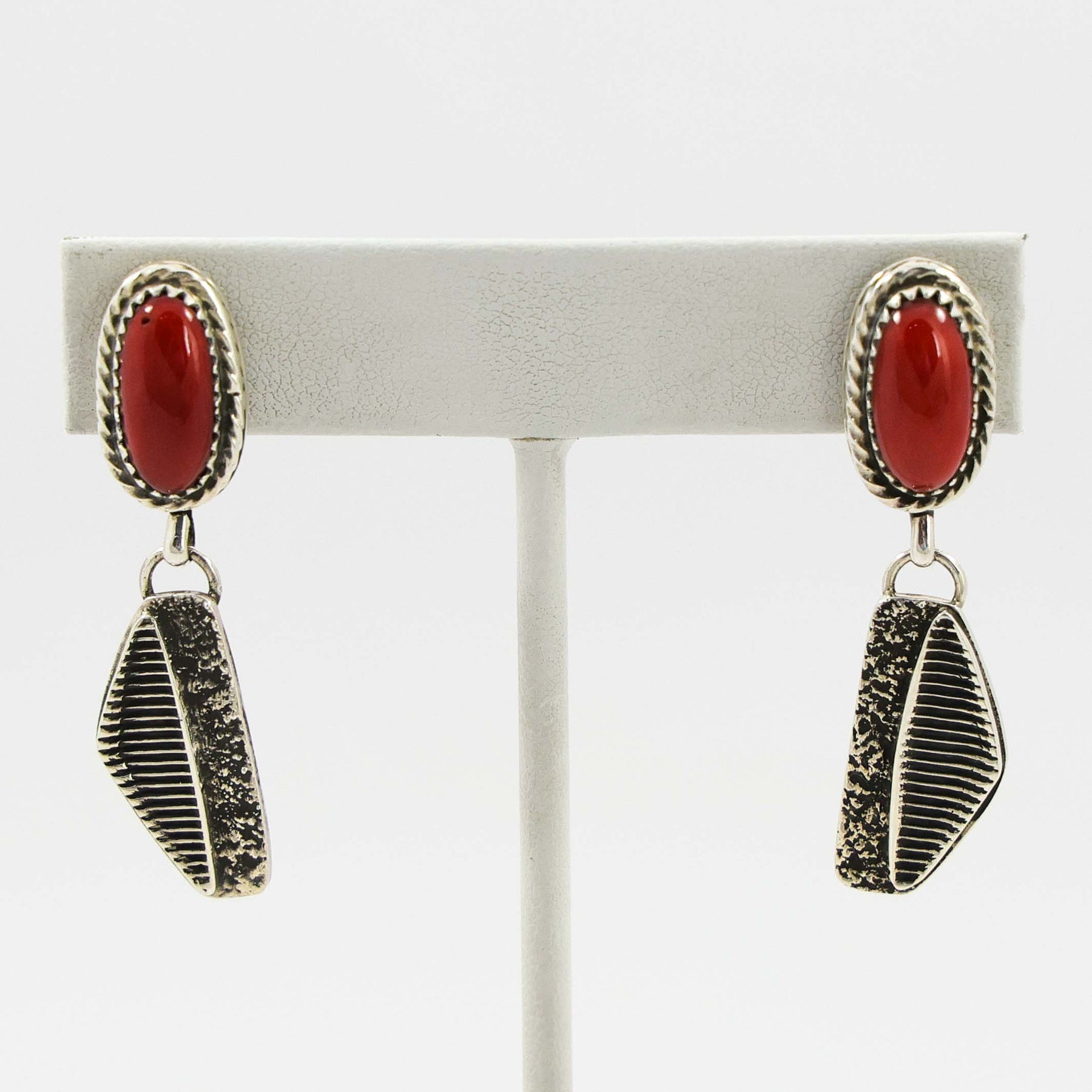 Sterling Silver Post and Dangle Earrings set with Coral.