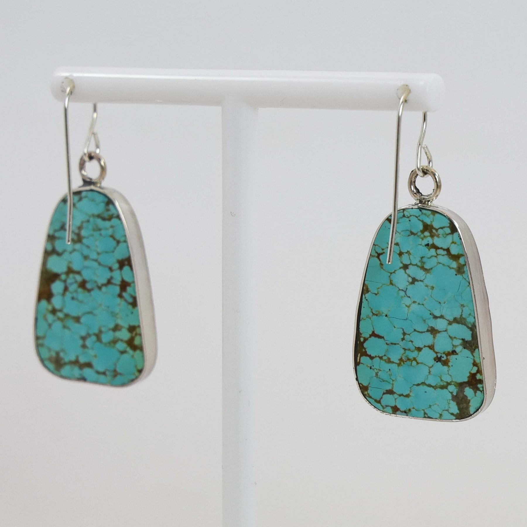 Sterling Silver French Hook Earrings with Hand-Cut Stabilized Turquoise Slabs and a Sterling Silver Border.