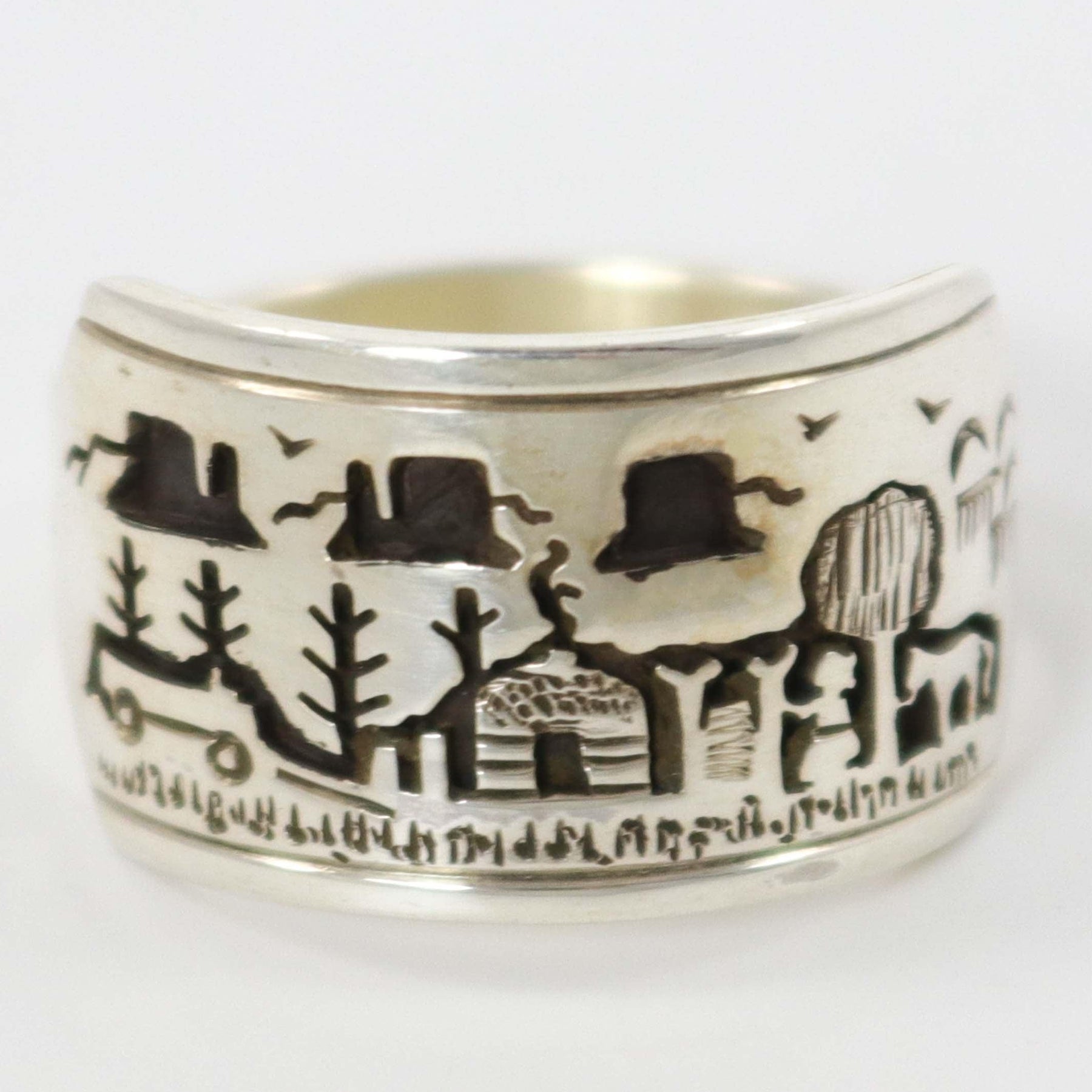 Sterling Silver Ring with Overlaid Navajo Storyteller Design.