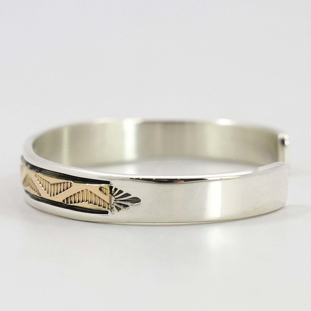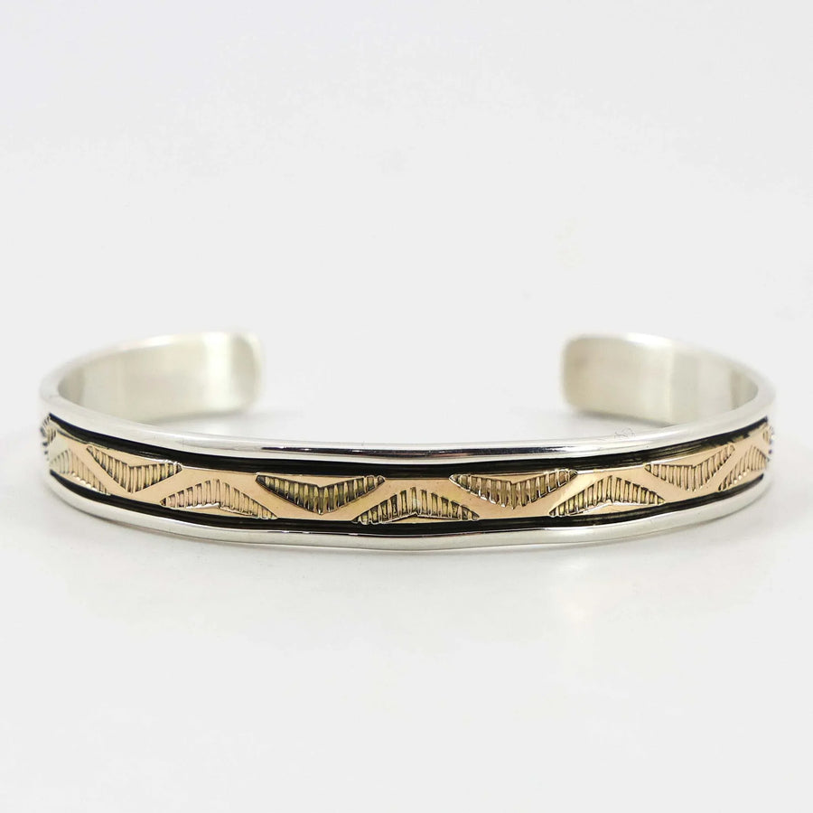 Sterling Silver and 14k Gold Cuff Bracelet with Hand-Stamped Designs.