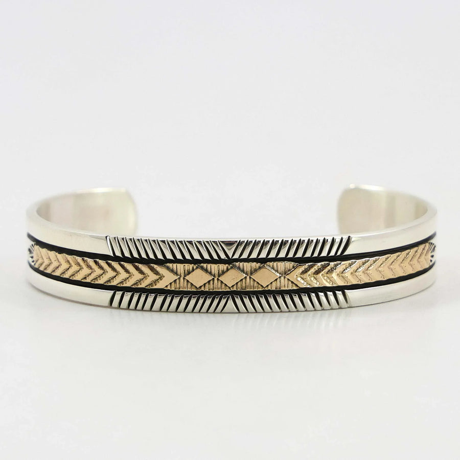Sterling Silver and 14k Gold Cuff Bracelet with Hand-Stamped Designs.