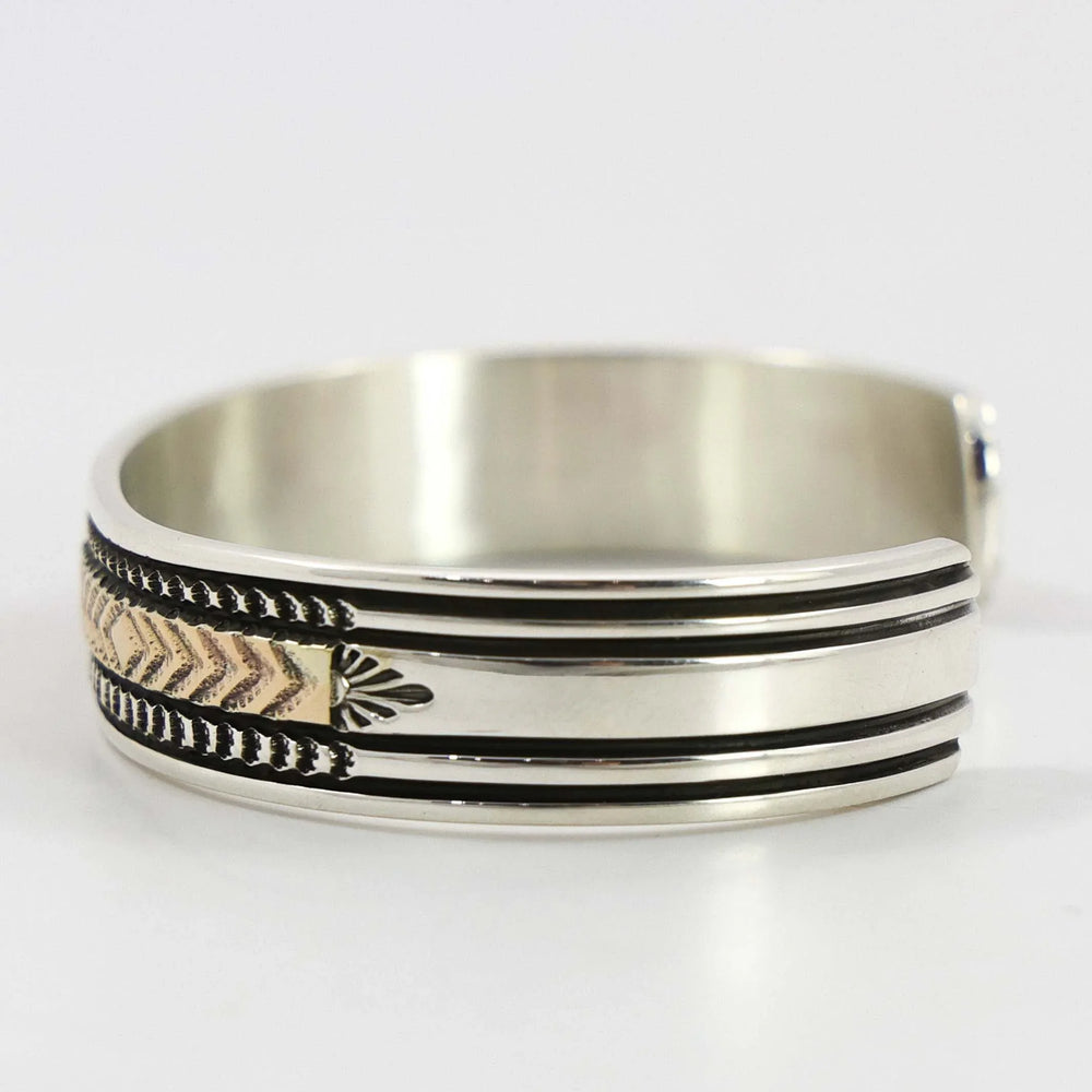 Sterling Silver and 14k Gold Cuff Bracelet with Hand-Stamped Designs.