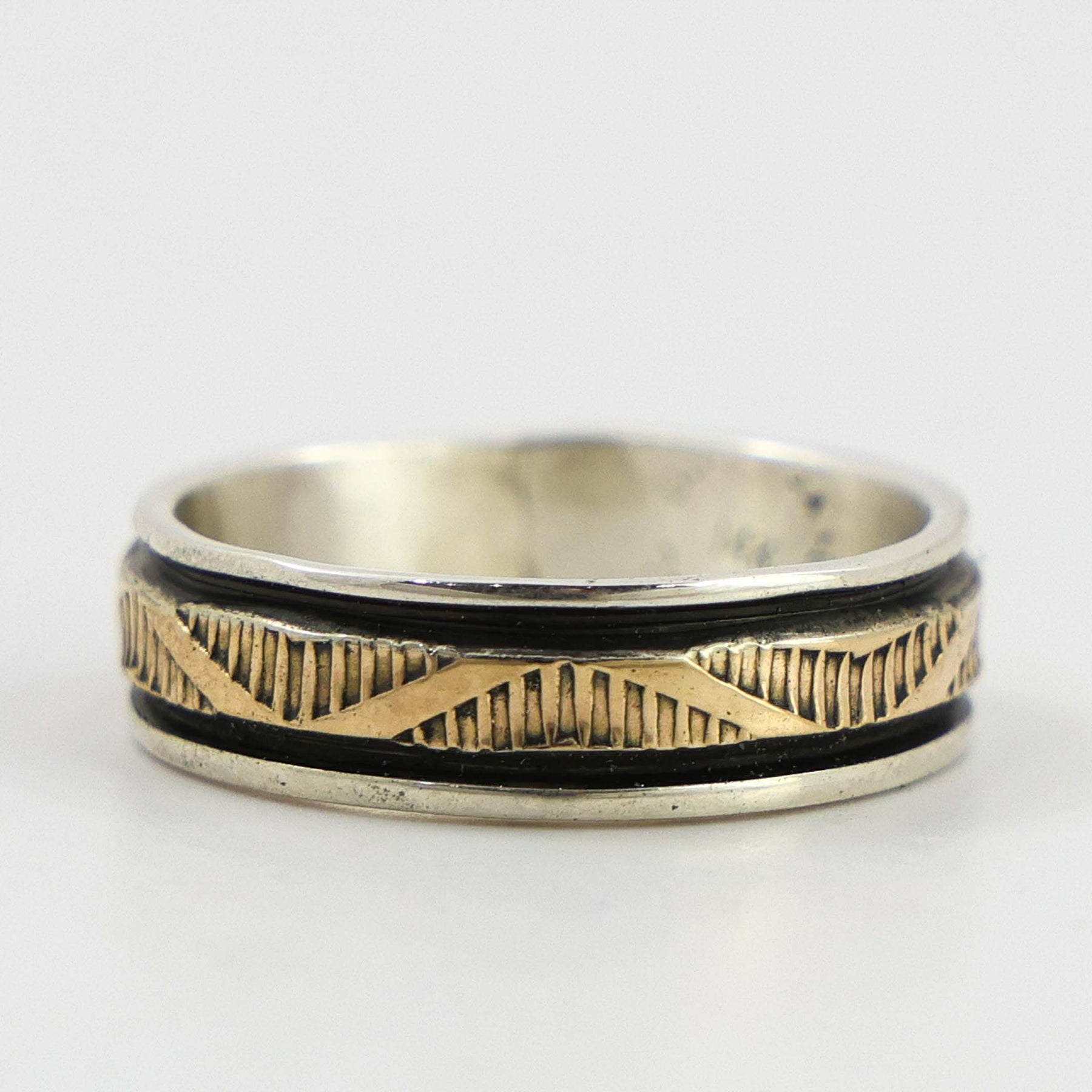 Sterling Silver and 14k Gold Ring with Hand-Stamped Designs.