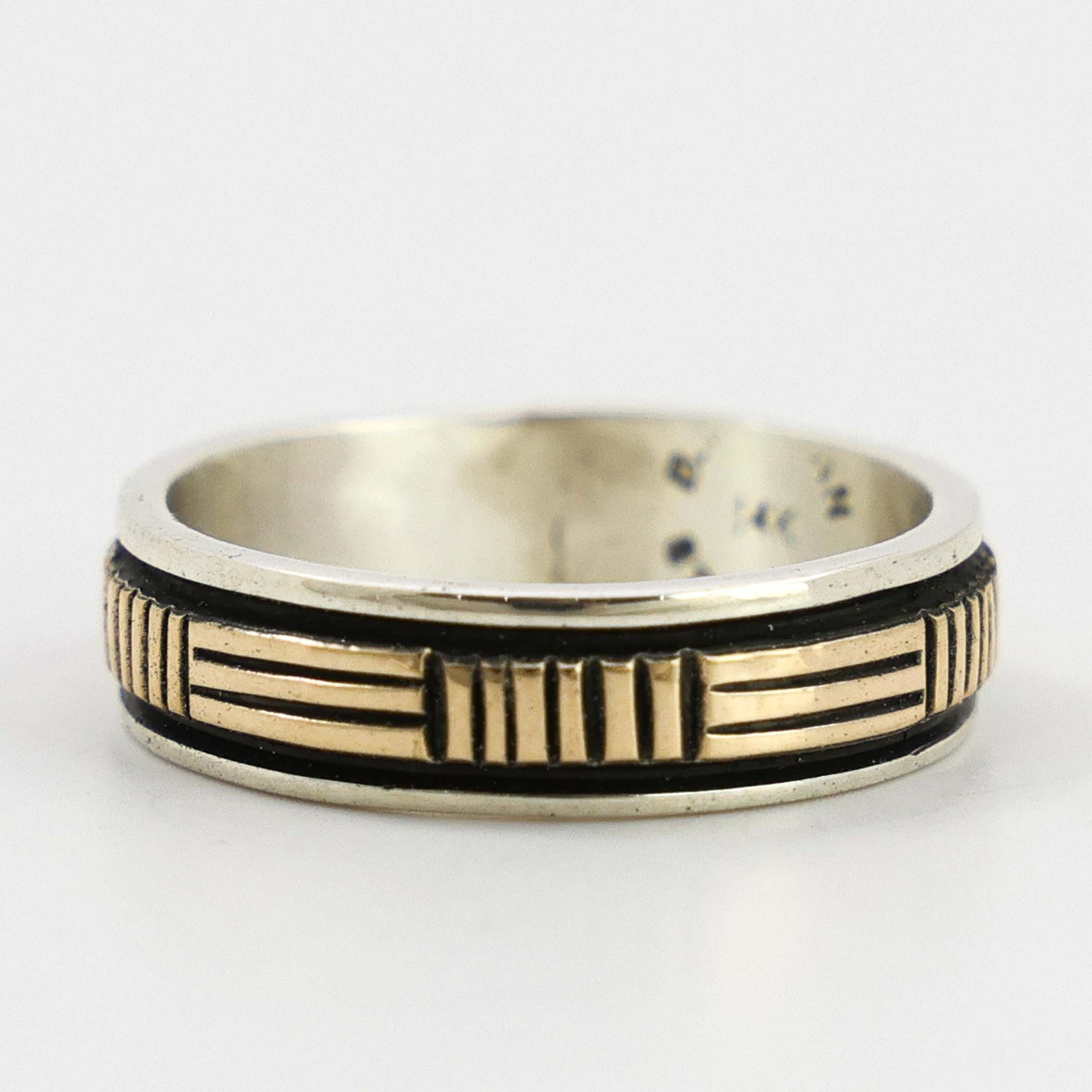 Sterling Silver and 14k Gold Ring with Hand-Stamped Designs.