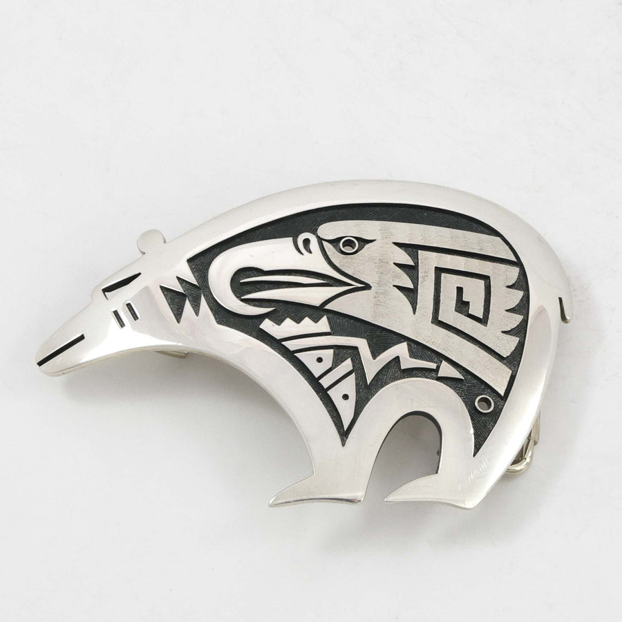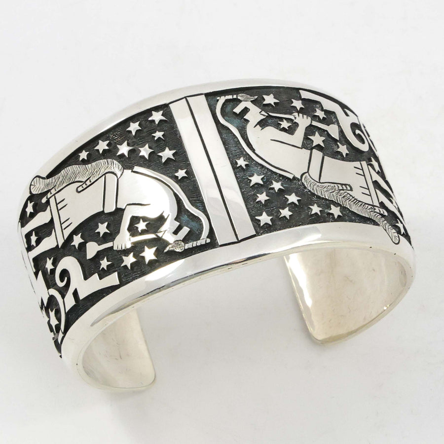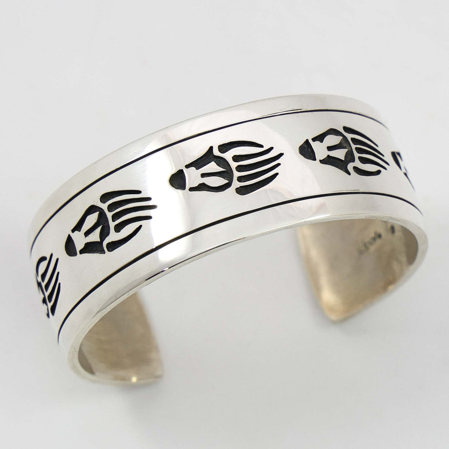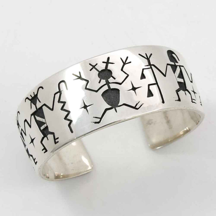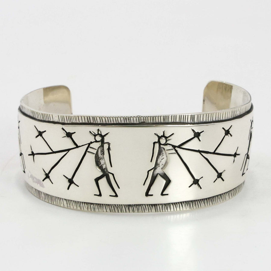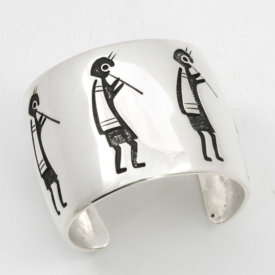 The Hopi are one of the oldest living cultures in documented history; they migrated from the south to Arizona in the 12th century. The Hopi tribe is located in Northeastern Arizona on 2,500 square miles in the middle of the Navajo Nation. Their land, called Hopitutskwa, is made up of 12 villages on three mesas. The Hopi tribe currently has around 20,000 enrolled members. Hopis are known for their colorful and traditional culture, centered around living the Hopi Way as peaceful and humble farmers in reverence of the land and its resources. Kachinas are central to their spirituality and culture. In silversmithing, Hopis are best known for their intricate overlay designs.