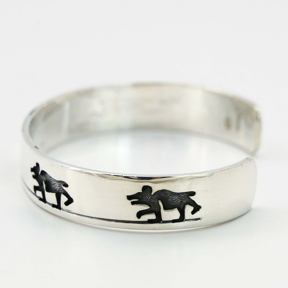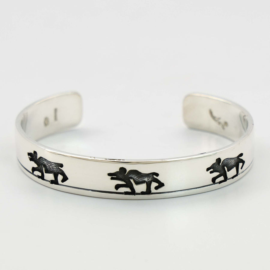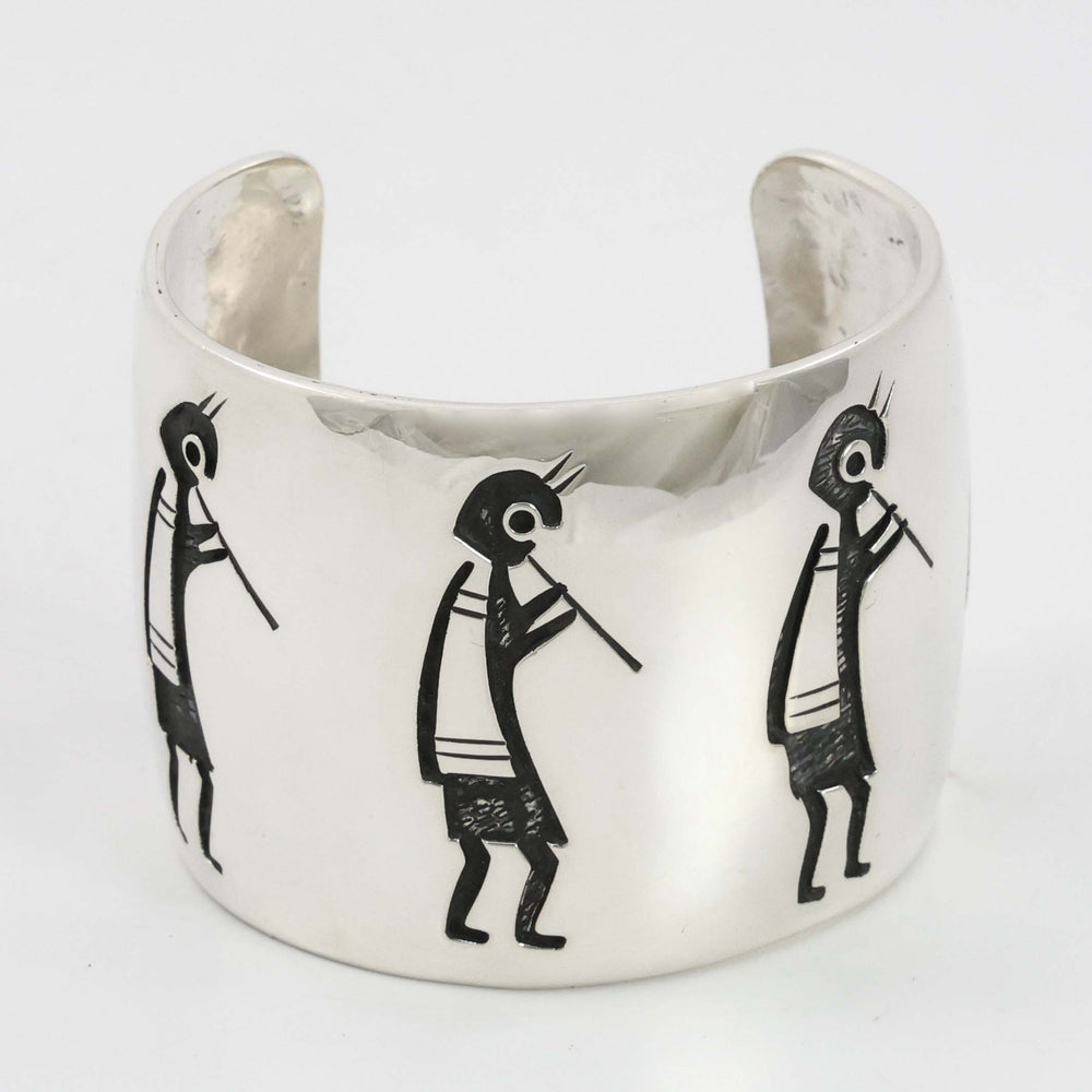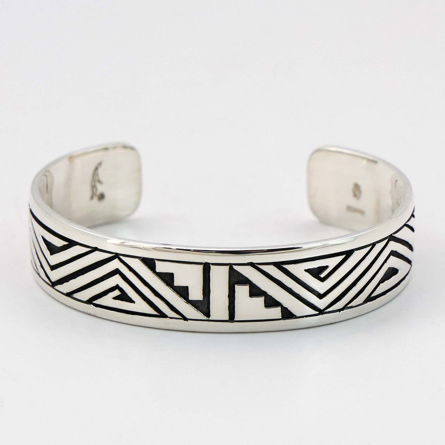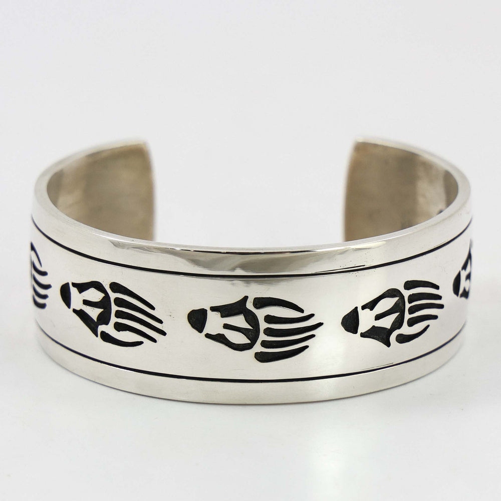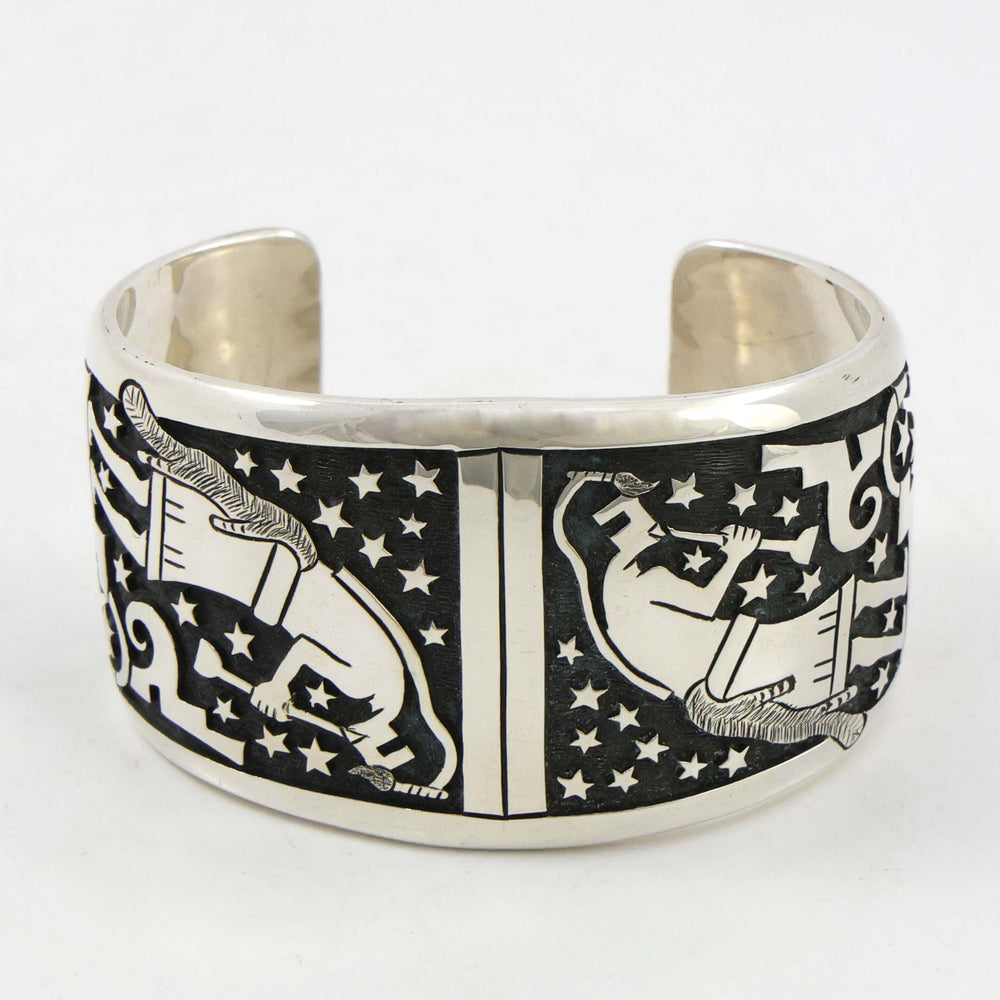The Hopi are one of the oldest living cultures in documented history; they migrated from the south to Arizona in the 12th century. The Hopi tribe is located in Northeastern Arizona on 2,500 square miles in the middle of the Navajo Nation. Their land, called Hopitutskwa, is made up of 12 villages on three mesas. The Hopi tribe currently has around 20,000 enrolled members. Hopis are known for their colorful and traditional culture, centered around living the Hopi Way as peaceful and humble farmers in reverence of the land and its resources. Kachinas are central to their spirituality and culture. In silversmithing, Hopis are best known for their intricate overlay designs.