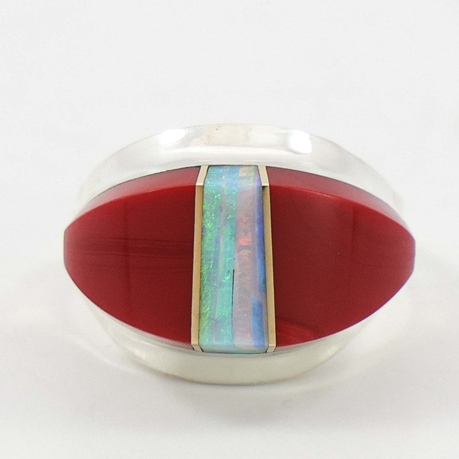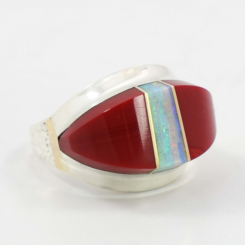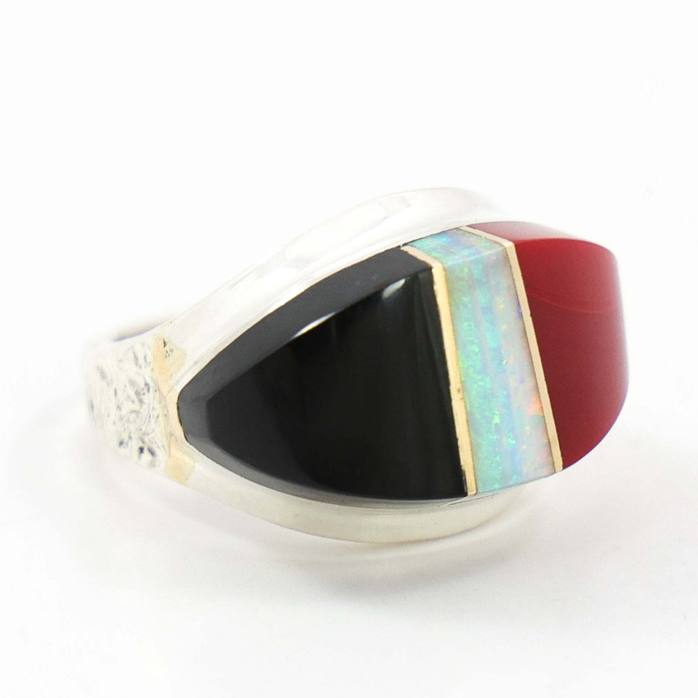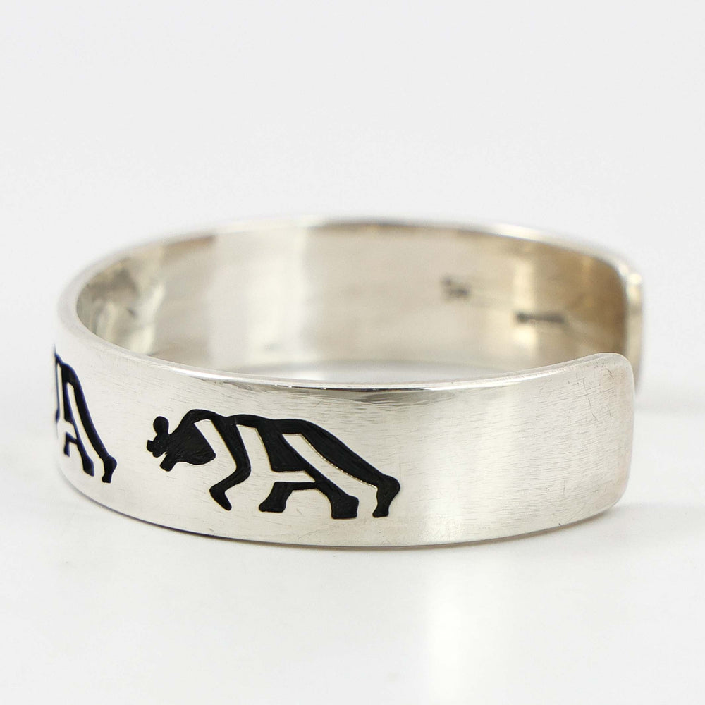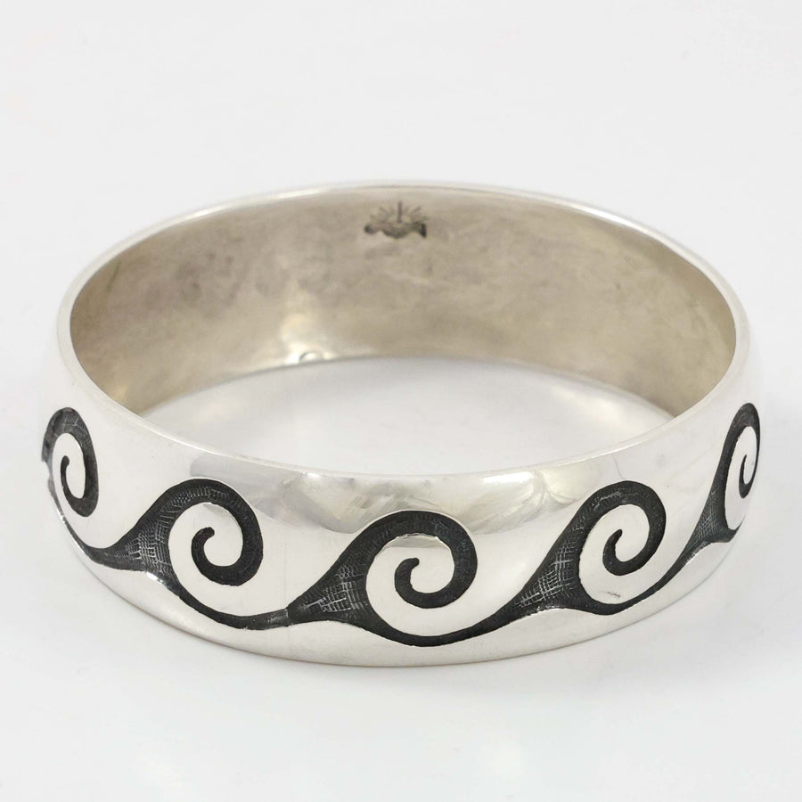 The Hopi are one of the oldest living cultures in documented history; they migrated from the south to Arizona in the 12th century. The Hopi tribe is located in Northeastern Arizona on 2,500 square miles in the middle of the Navajo Nation. Their land, called Hopitutskwa, is made up of 12 villages on three mesas. The Hopi tribe currently has around 20,000 enrolled members. Hopis are known for their colorful and traditional culture, centered around living the Hopi Way as peaceful and humble farmers in reverence of the land and its resources. Kachinas are central to their spirituality and culture. In silversmithing, Hopis are best known for their intricate overlay designs.