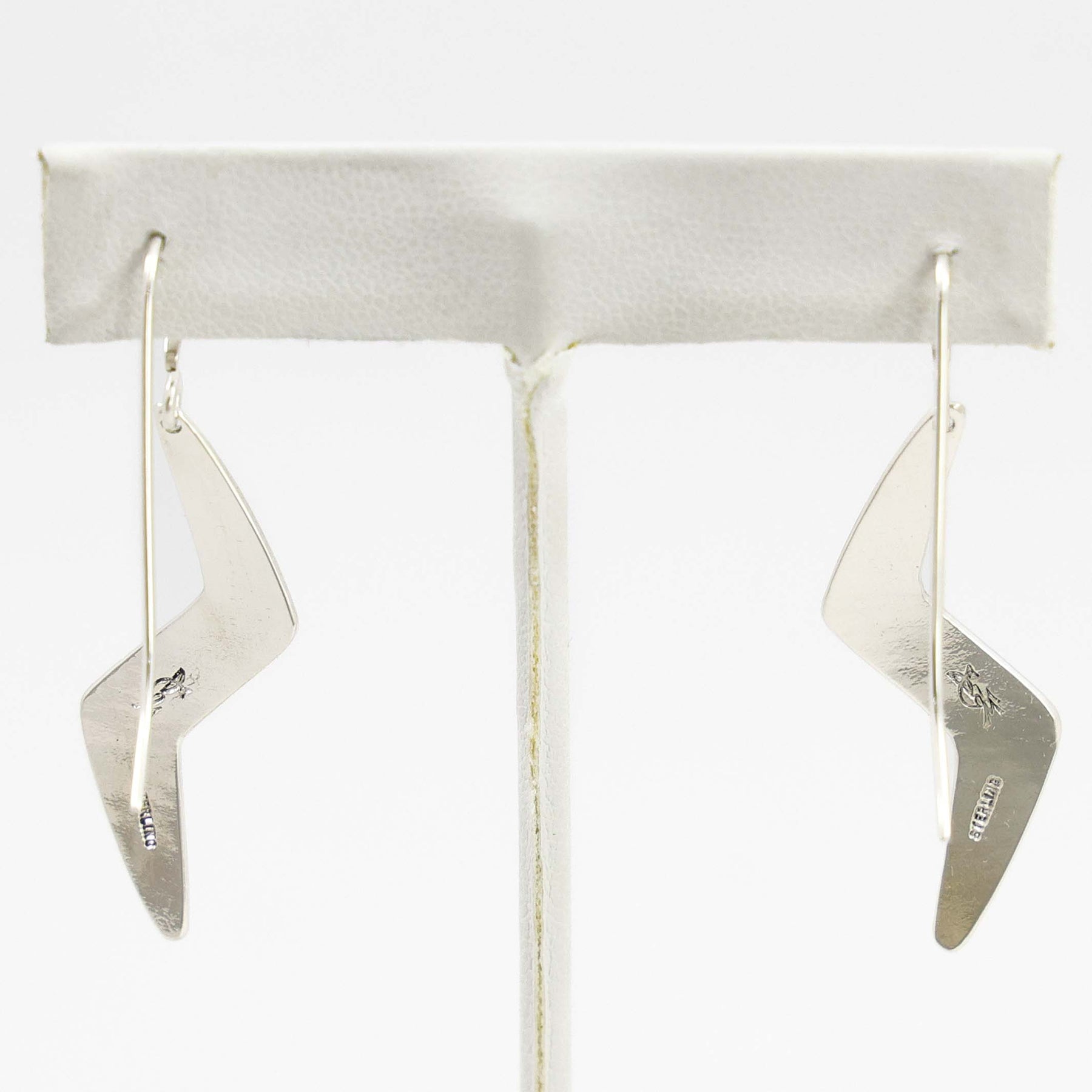 Sterling Silver French Hook Lightning Earrings with Hand-Hammered Texture.