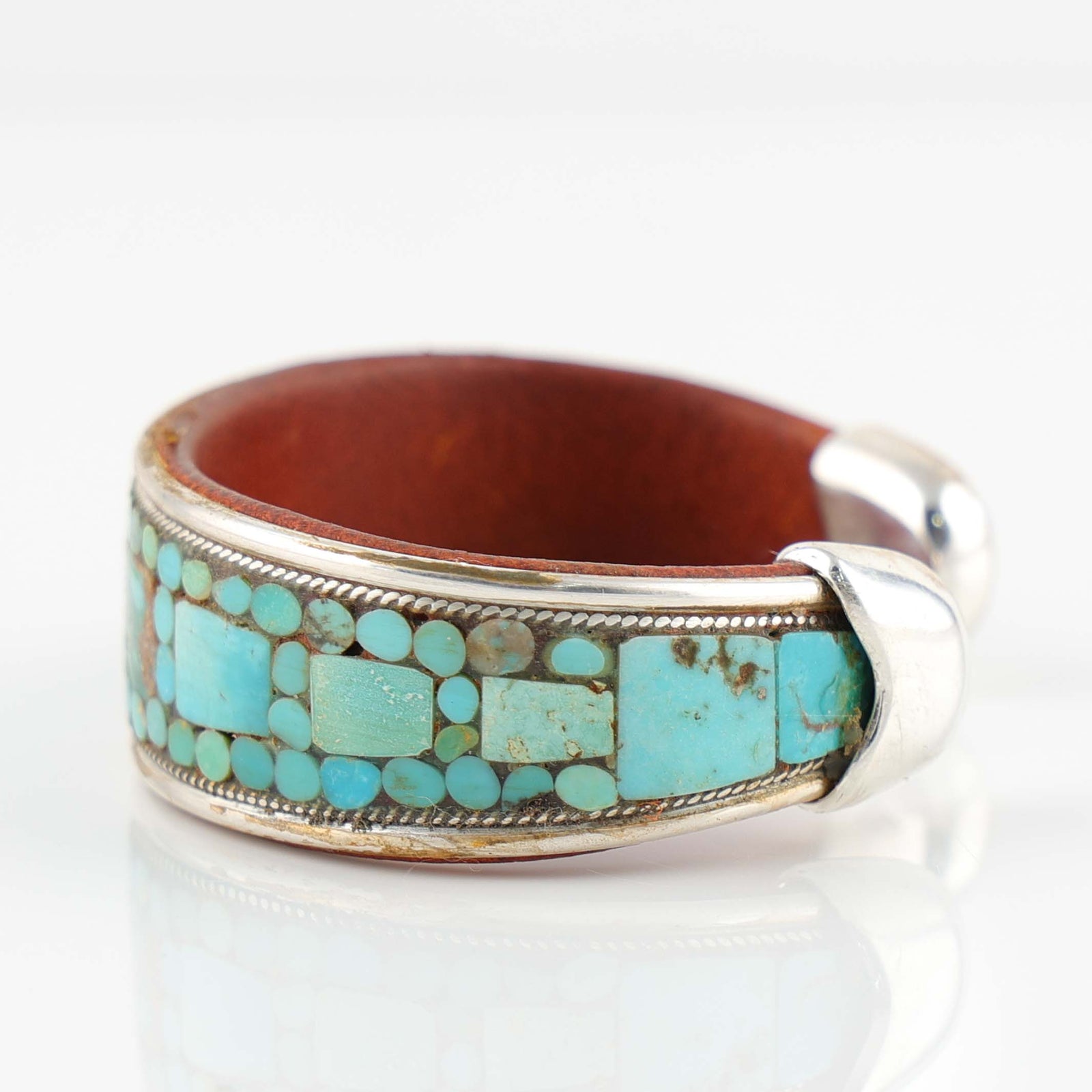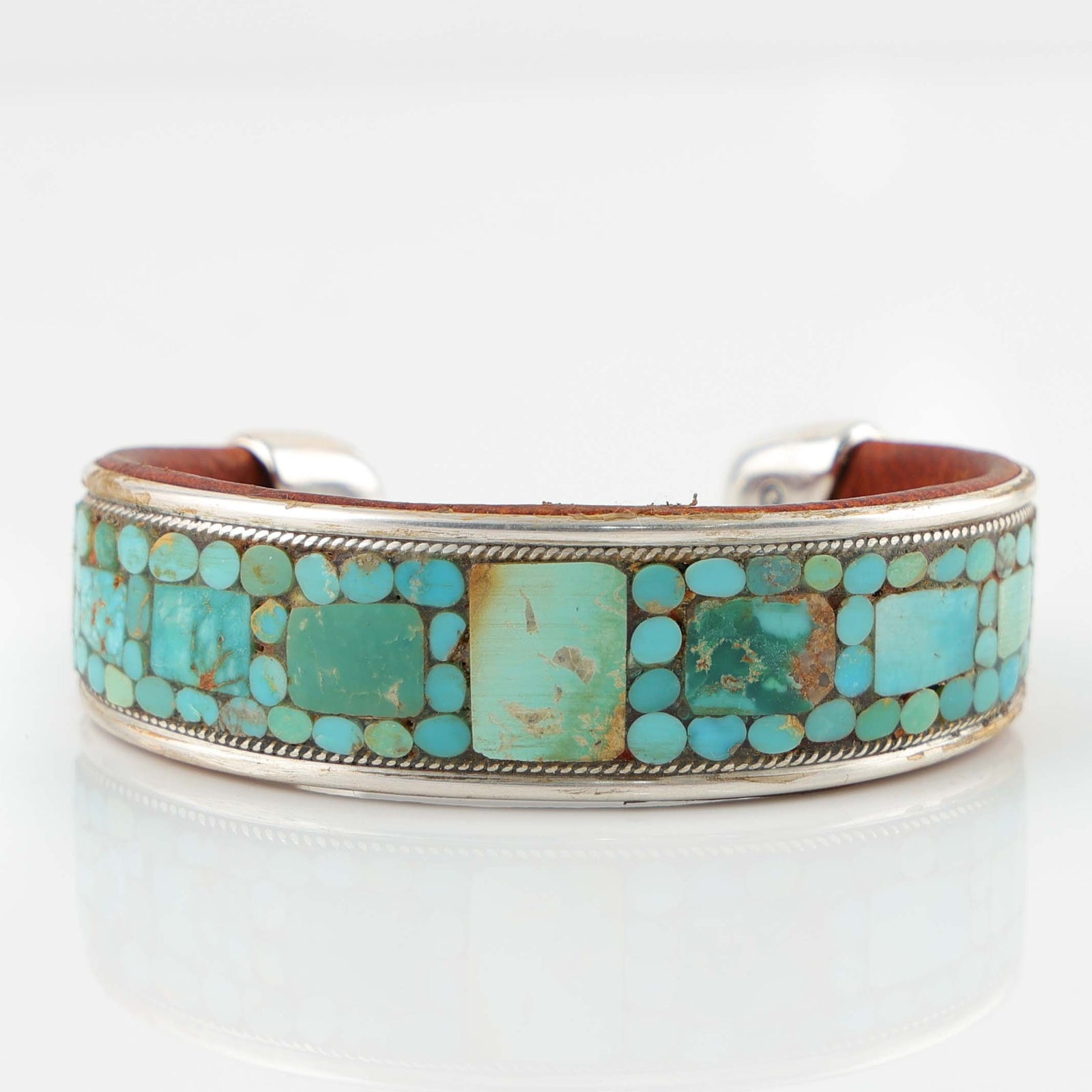 Mosaic Inlay is a type of lapidary where each stone is inlaid directly against the next stone. Cobbled Inlay is a type of Mosaic Inlay. The stones are inlaid against one another; however, they have an uneven, raised appearance- like that of a cobble stone street. Channel Inlay is a style where a silver, or gold, spacer separates each inlaid stone. This creates a different look where the metal creates a ‘grid’ around the stones.