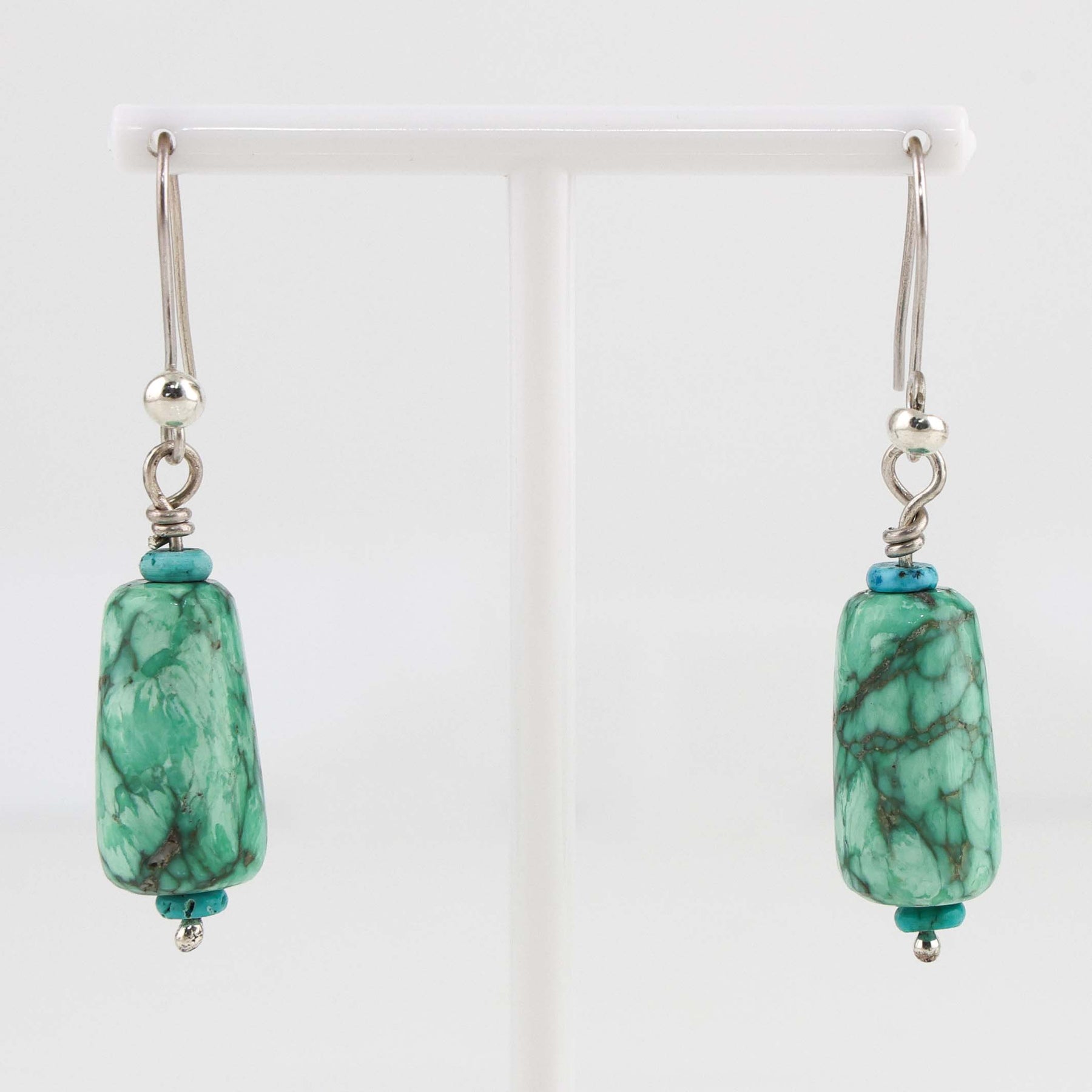 Sterling Silver French Hook Earrings with Hand-Rolled Natural Variscite and Turquoise Beads.
