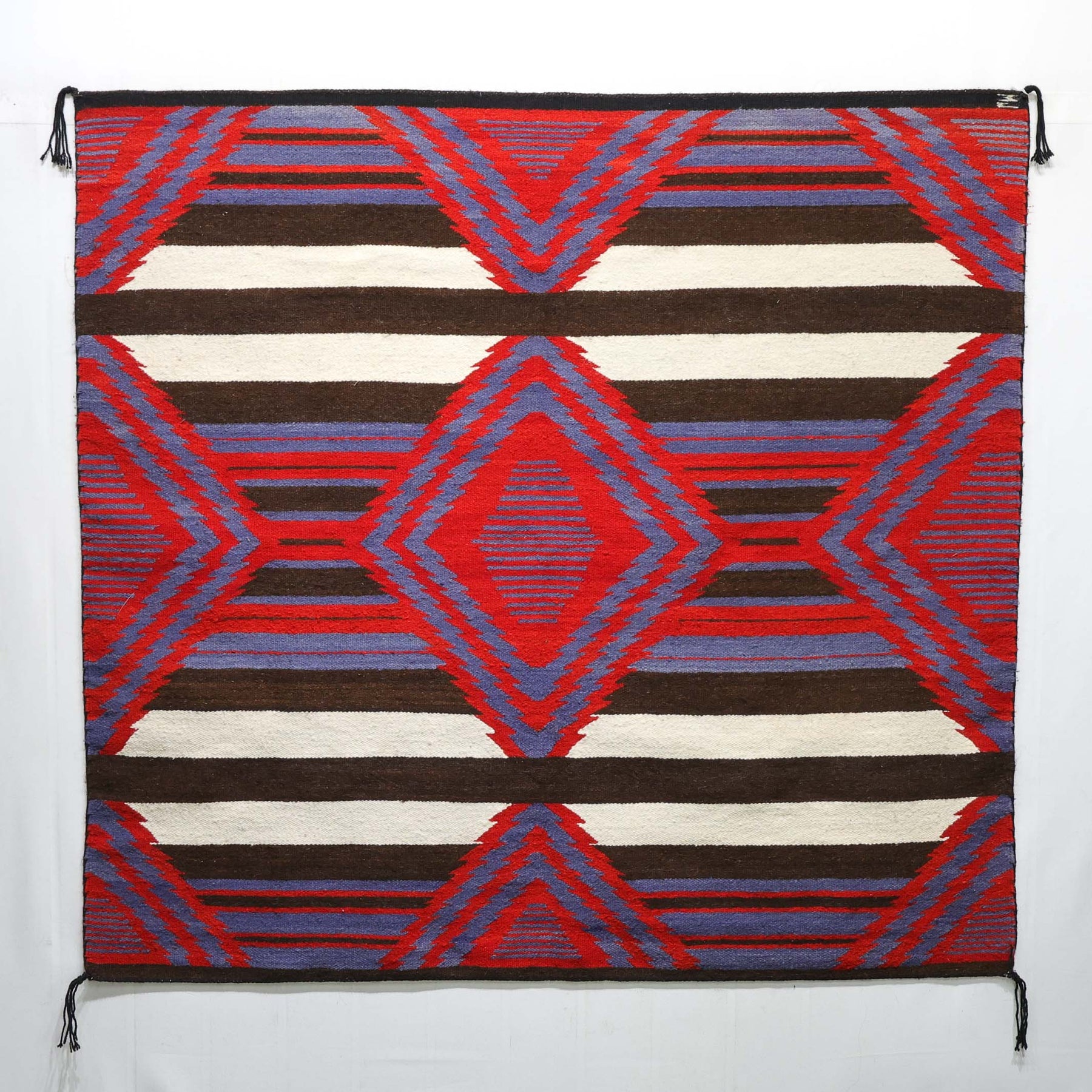 A powerful and authentic example Navajo textile tradition, ideal as a dramatic wall hanging or collector's piece.