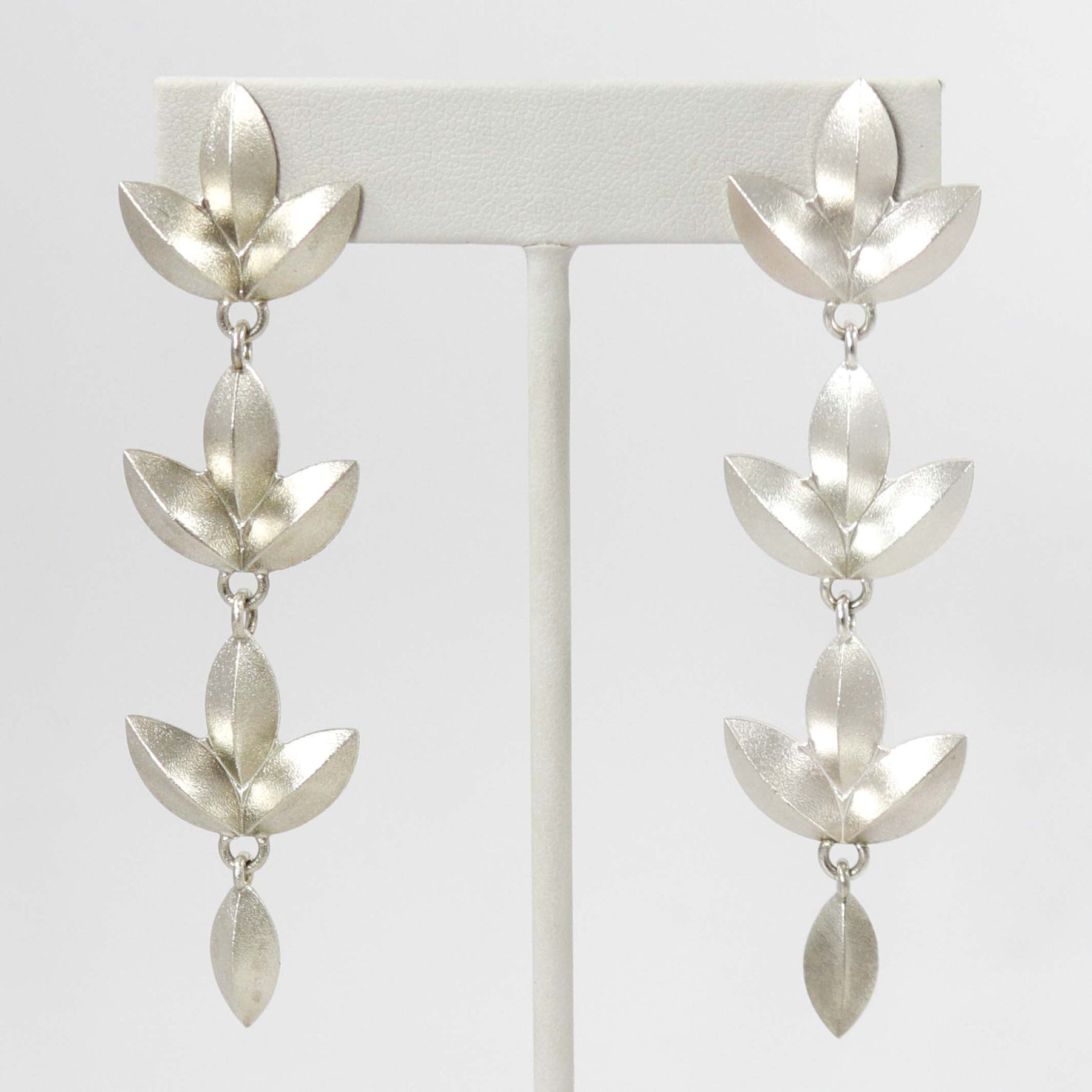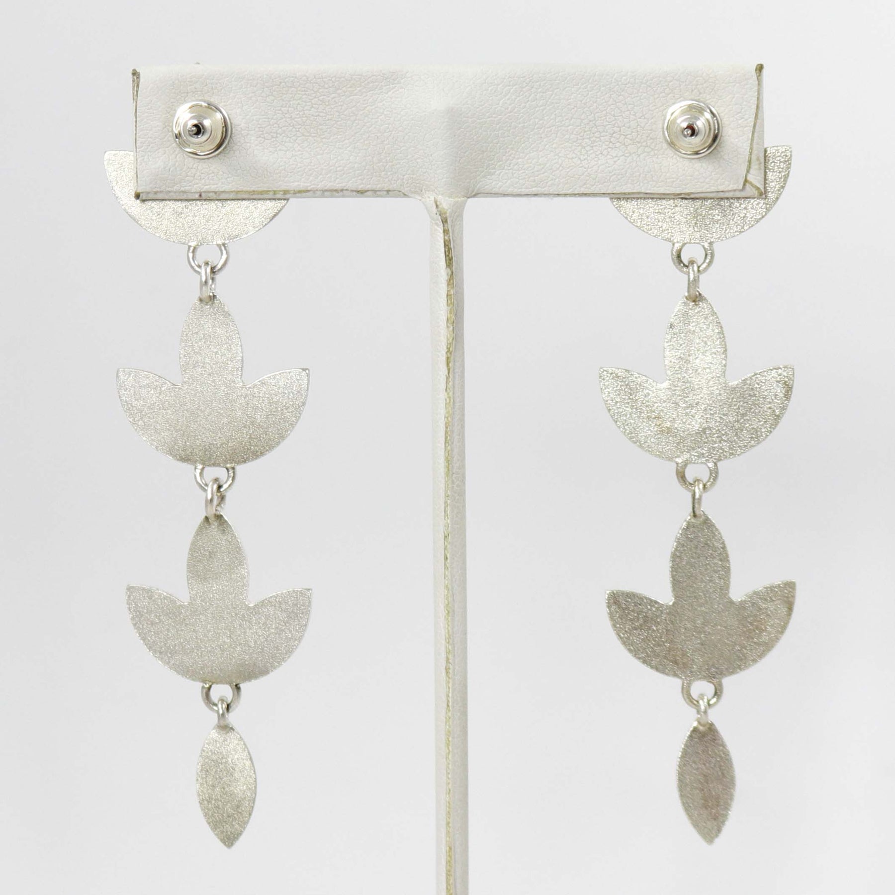 Sterling Silver “Sweet Pea” Post and Dangle Earrings in a Satin Matte Finish.