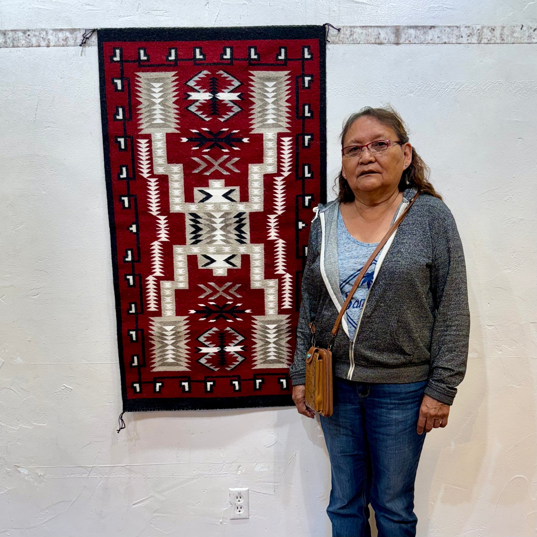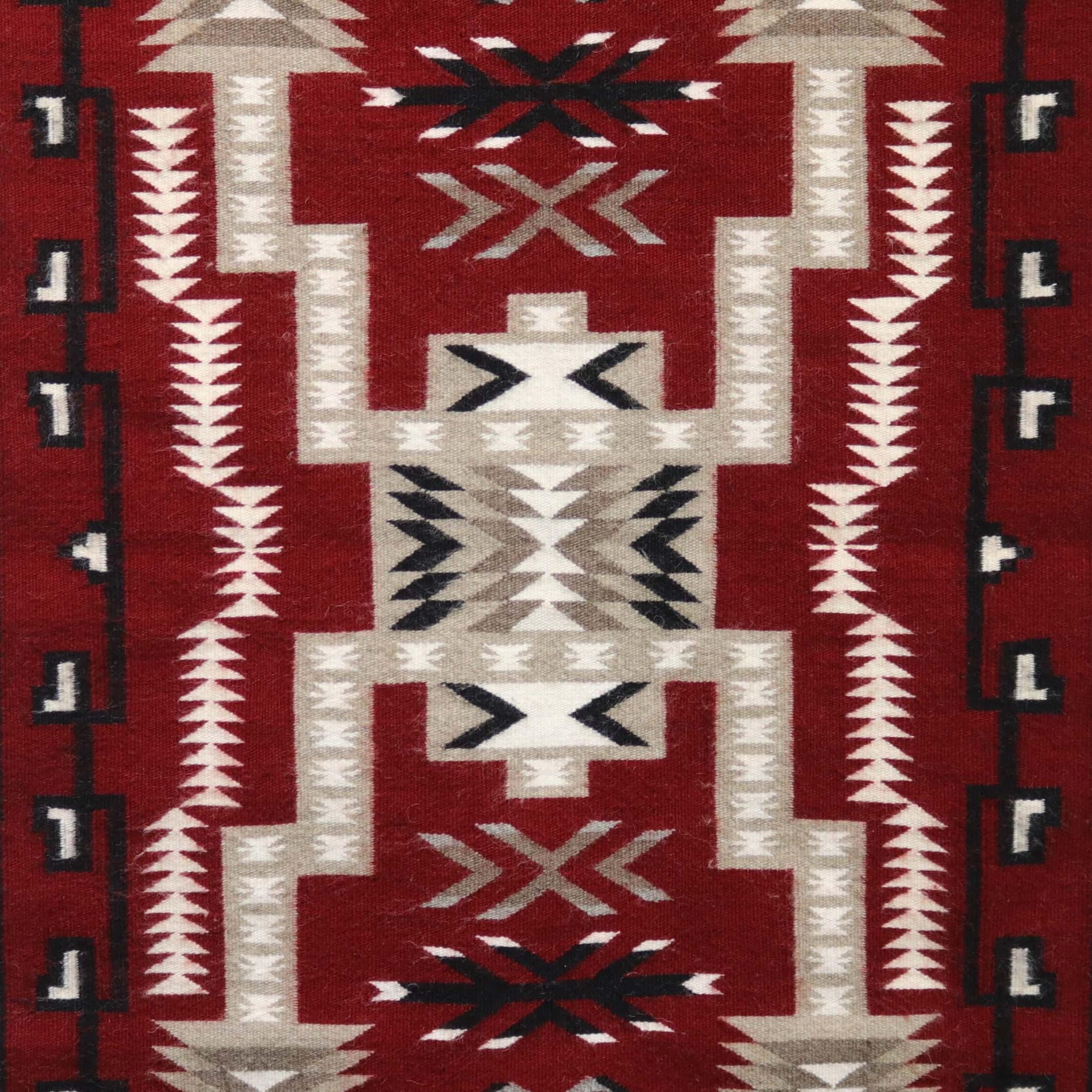 Navajo Weaving with a Storm Pattern Design Element on a Red Background.
