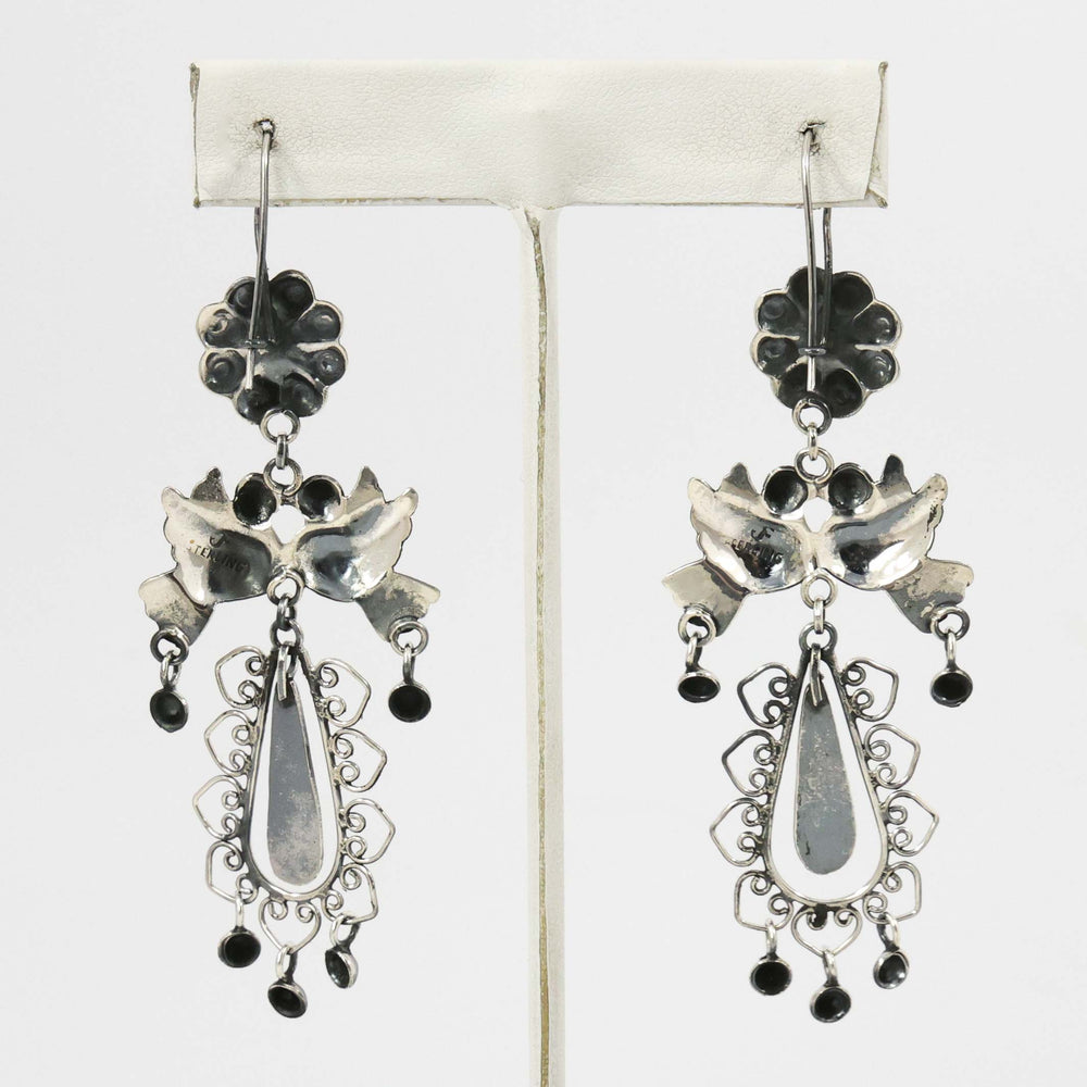 These pieces of jewelry are all-metal and do not contain set stones or inlay. The majority of our collection is Sterling Silver but some of our artists also work in Gold and Copper.