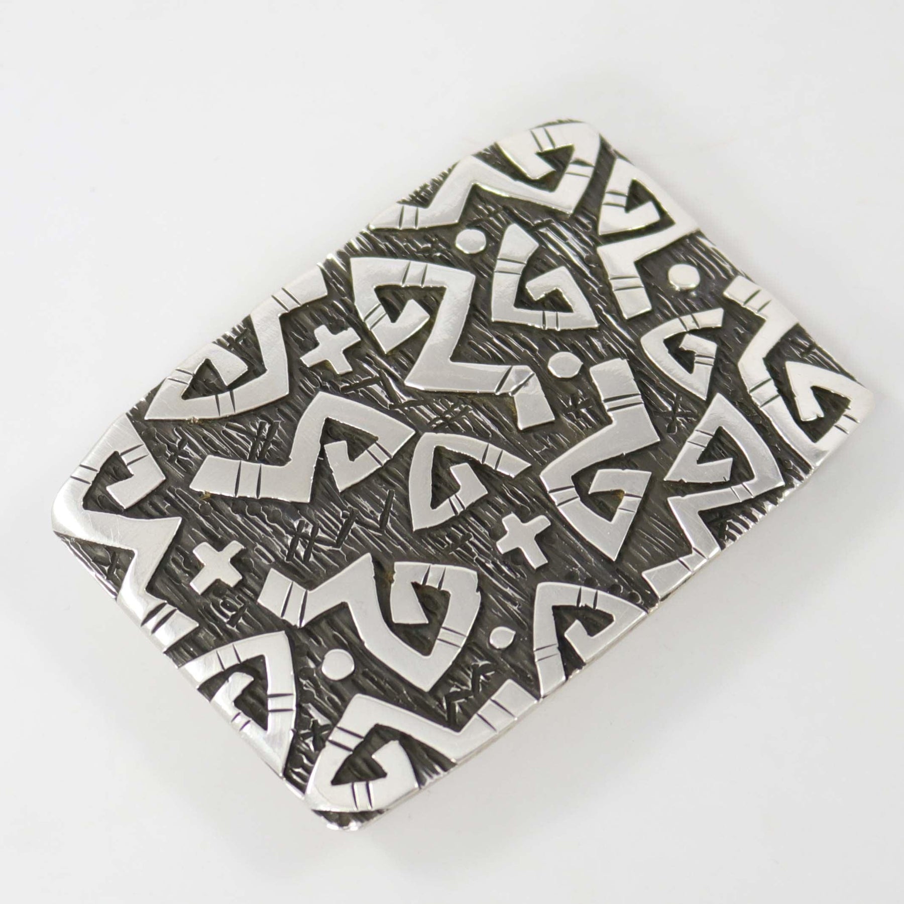 Sterling Silver Western Style Buckle with Appliqué Anasazi Migration and Star Designs.
