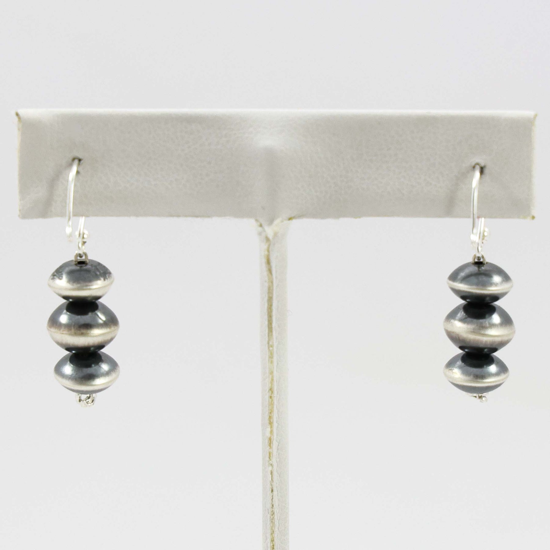 Sterling Silver French Hook Earrings with Handmade Navajo Pearl Beads in an Oxidized Finish.