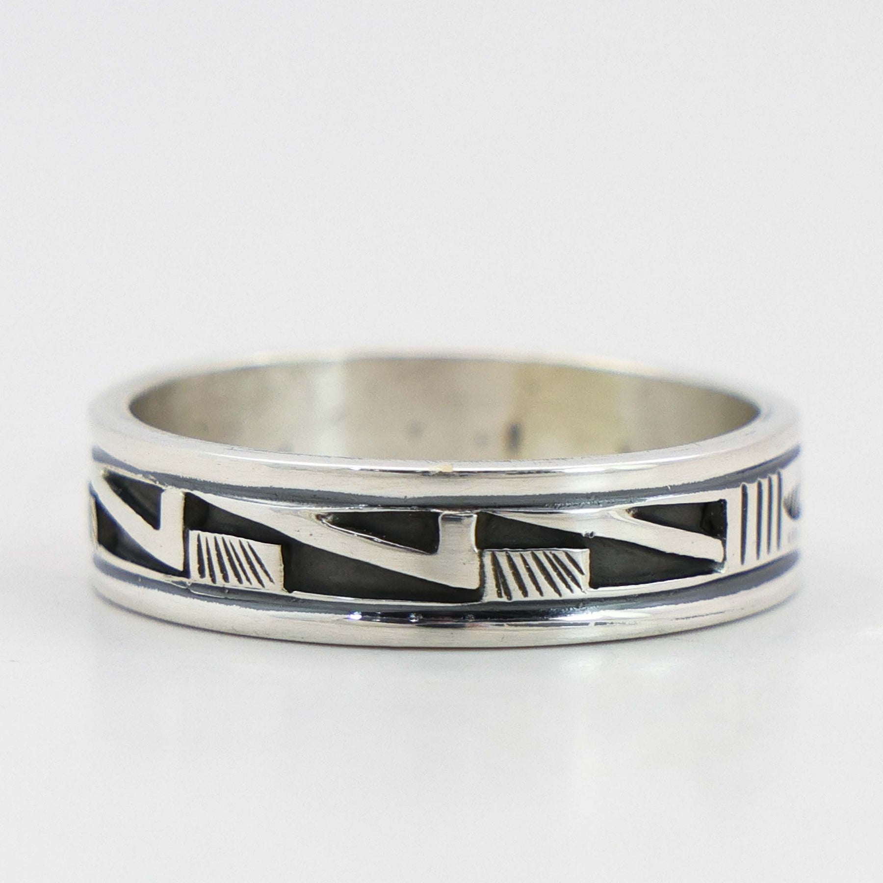 Sterling Silver Ring with Overlaid and Hand-Stamped Designs.
