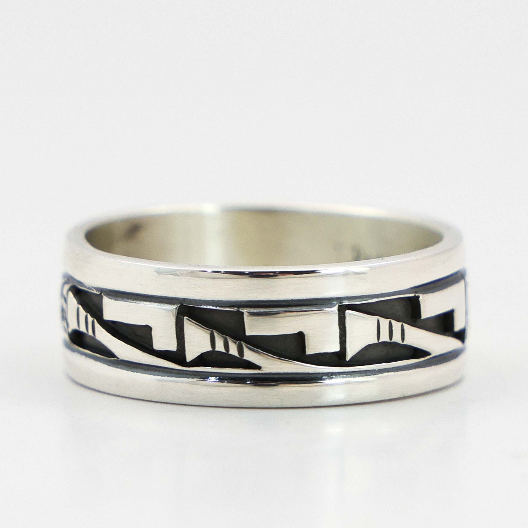 Sterling Silver Ring with Overlaid and Hand-Stamped Designs.