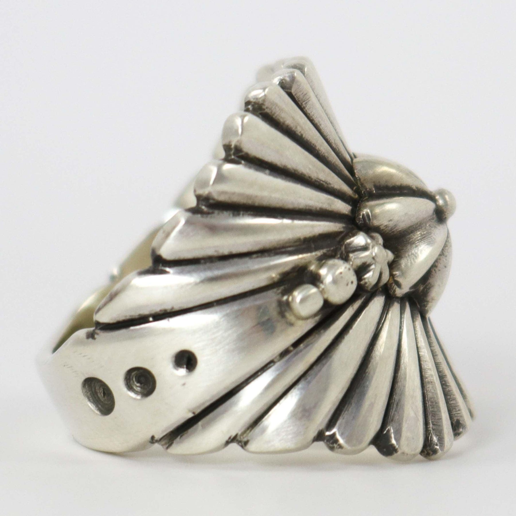Sterling Silver Ring with Hand-Stamped and Repousse Designs.