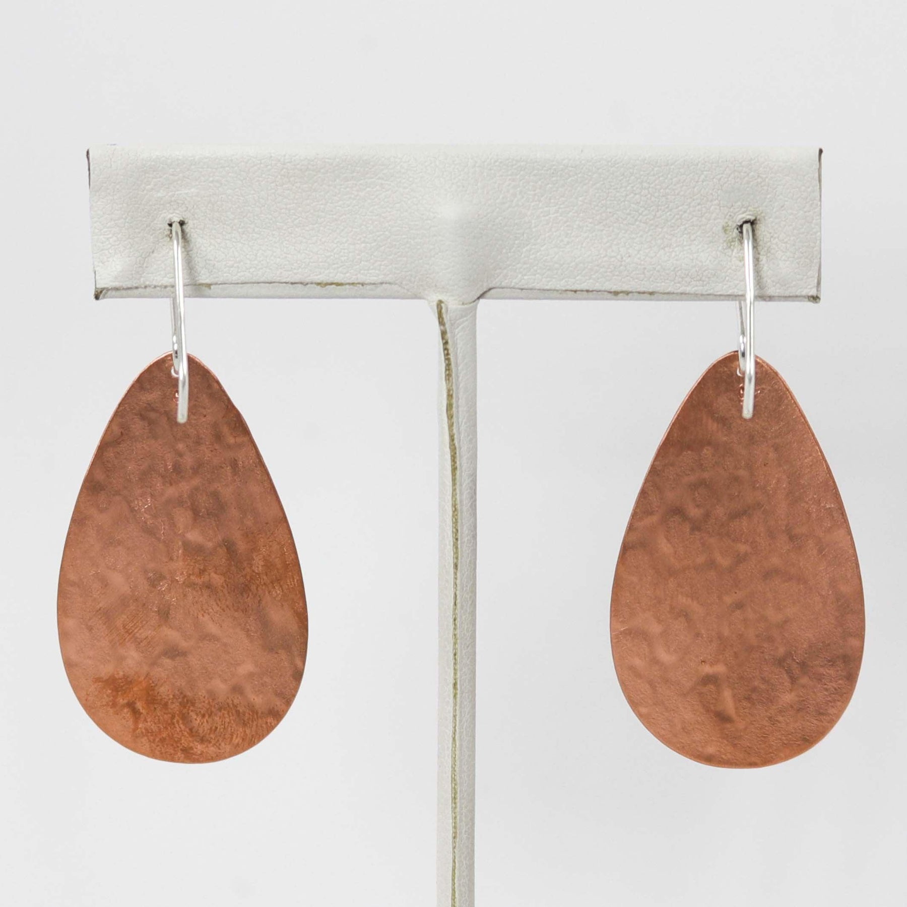 Sterling Silver French Hook Earrings with Hand-Hammered Copper Dangles.